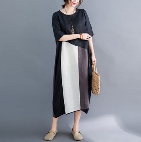 切り替えデザインがおしゃれなゆったりシルエットのワンピース