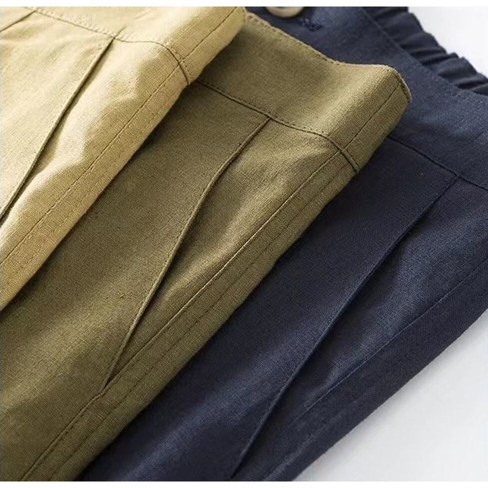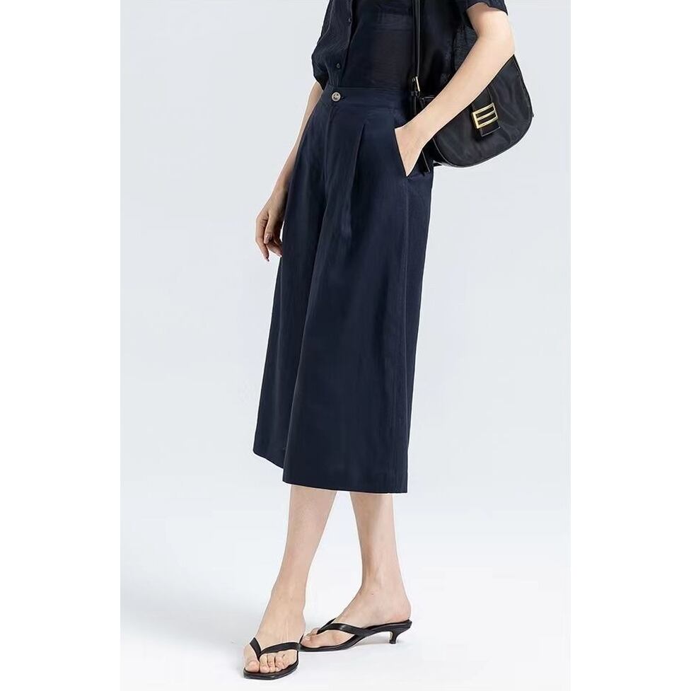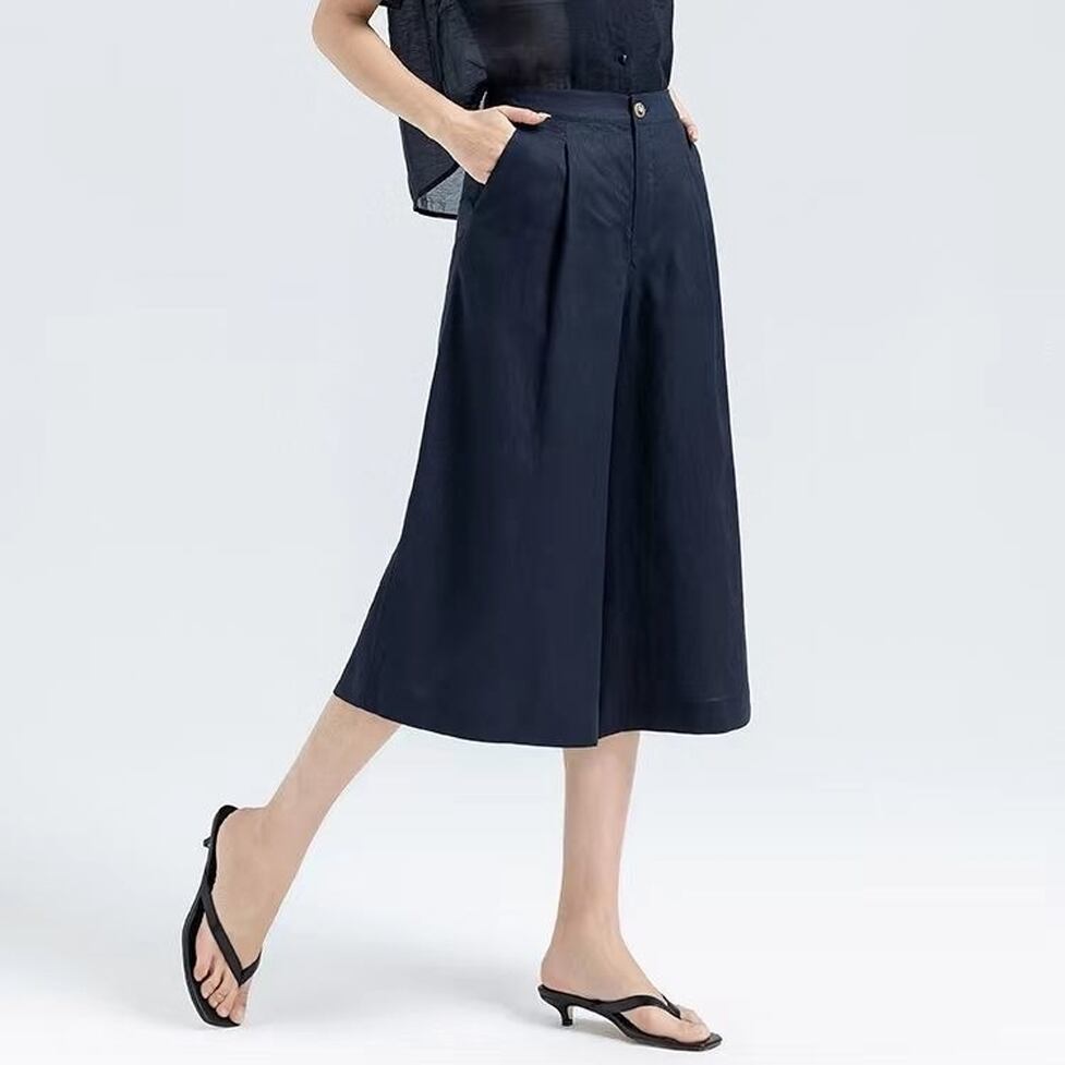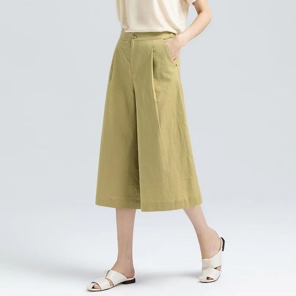 ツータック入りのナチュラル素材のフレアパンツです。ひざ下の丈感でヘルシーに着られる1枚。美しいAラインで適度なきちんと感を忘れずに演出。涼し気なコーデが完成します