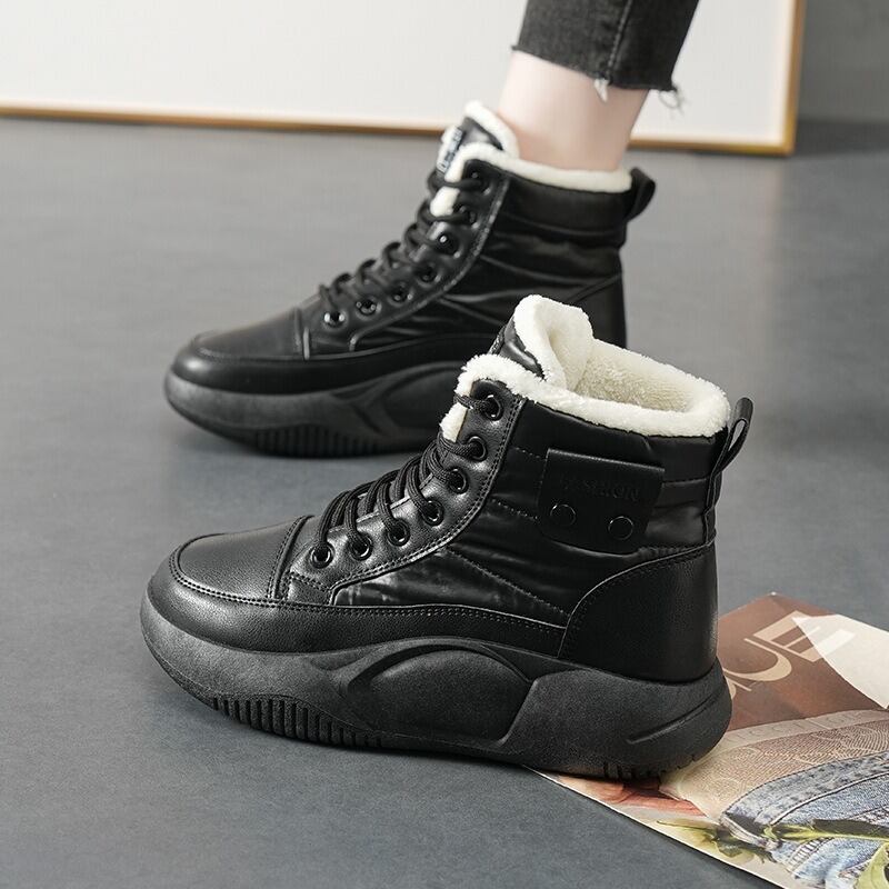 ハイカットデザインに、厚手のPU素材を使用しているため、暖かさと防寒性は抜群です。