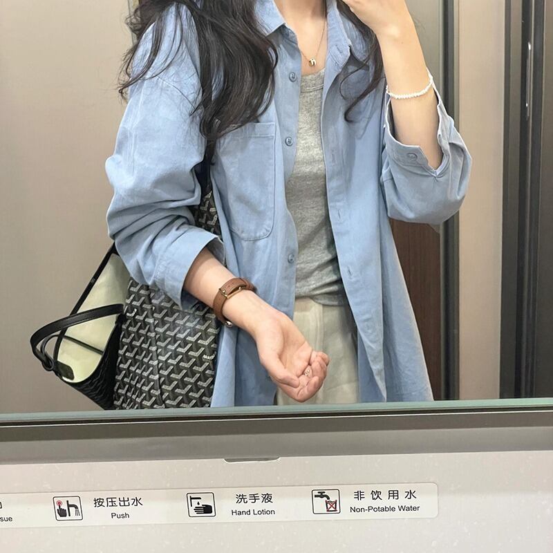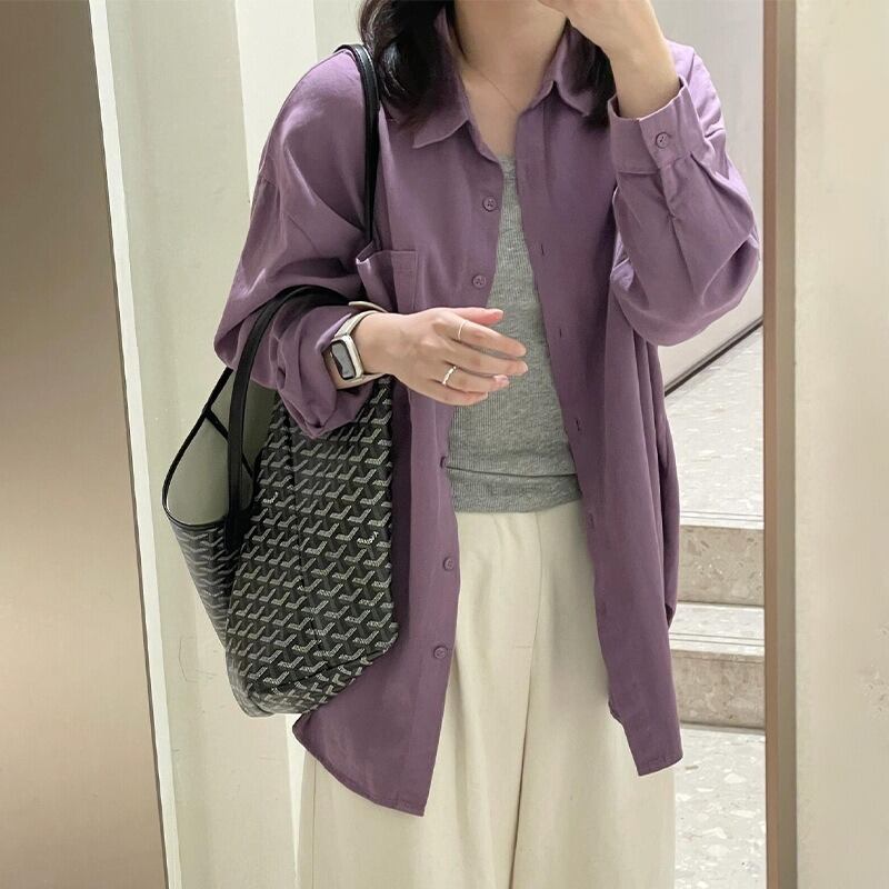 前開きデザインと襟付きのディテールが、カジュアルでありながらも可愛らしい印象を演出。