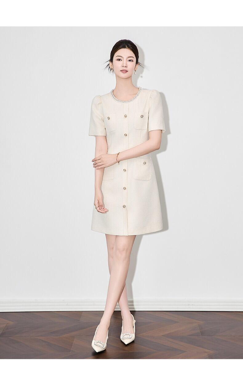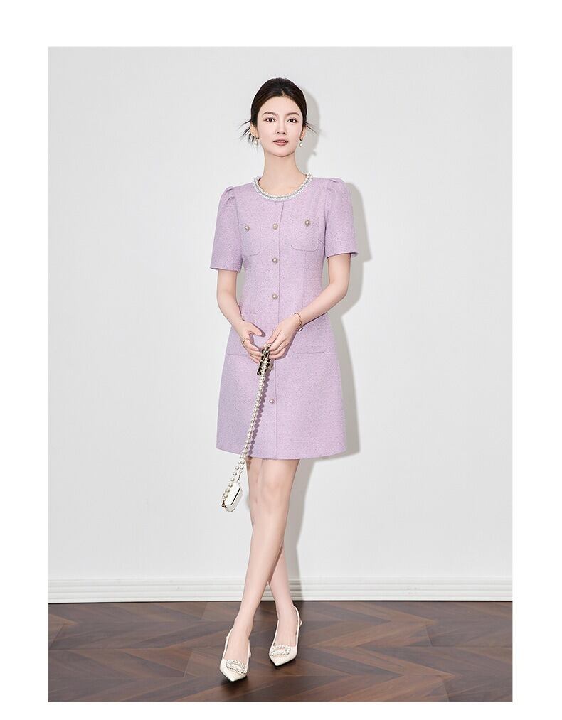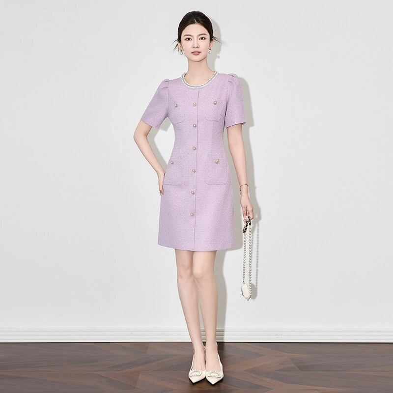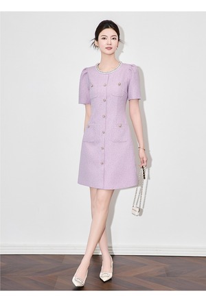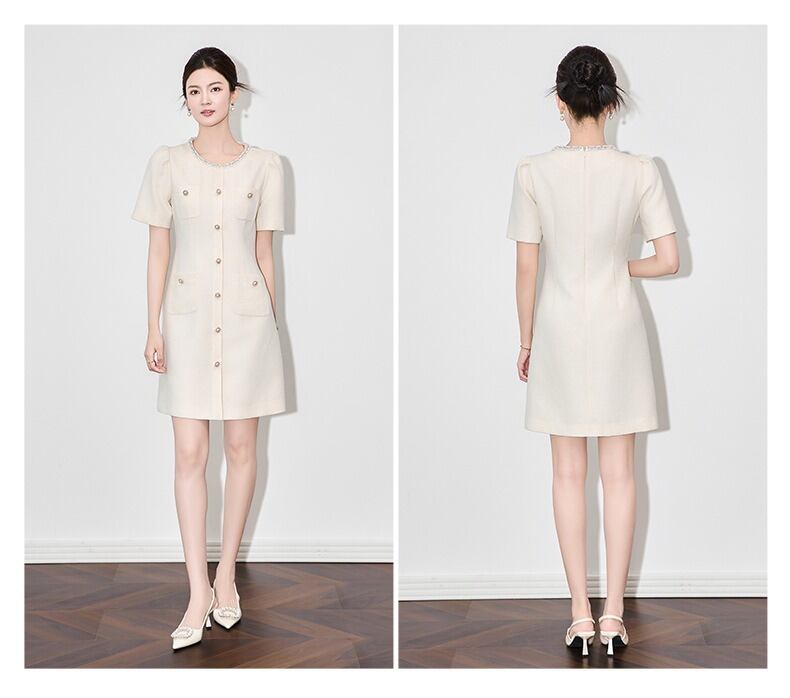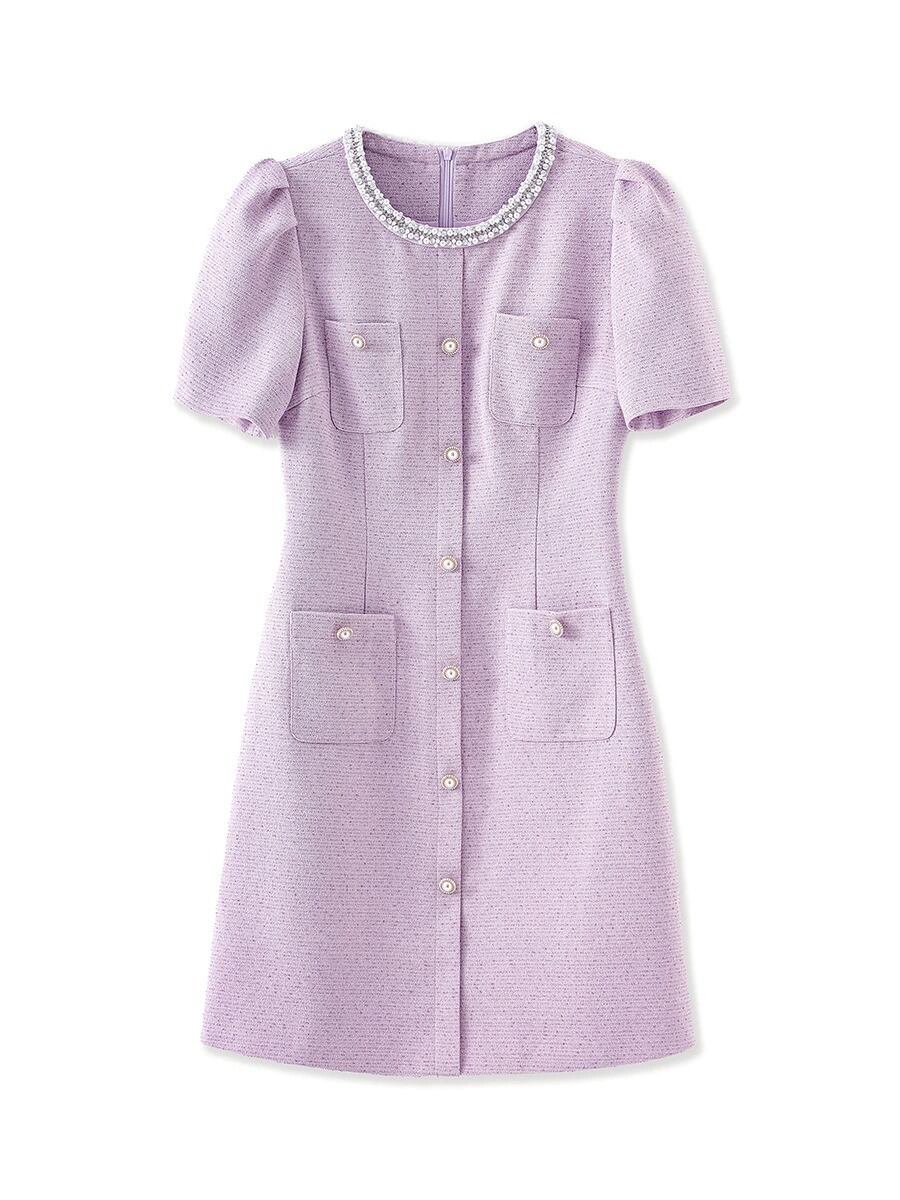 ふんわりと広がるAラインシルエットが女性らしさを引き立てる、半袖ワンピース。