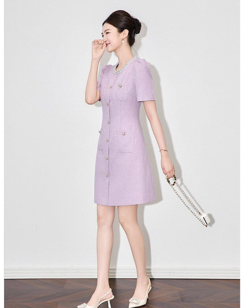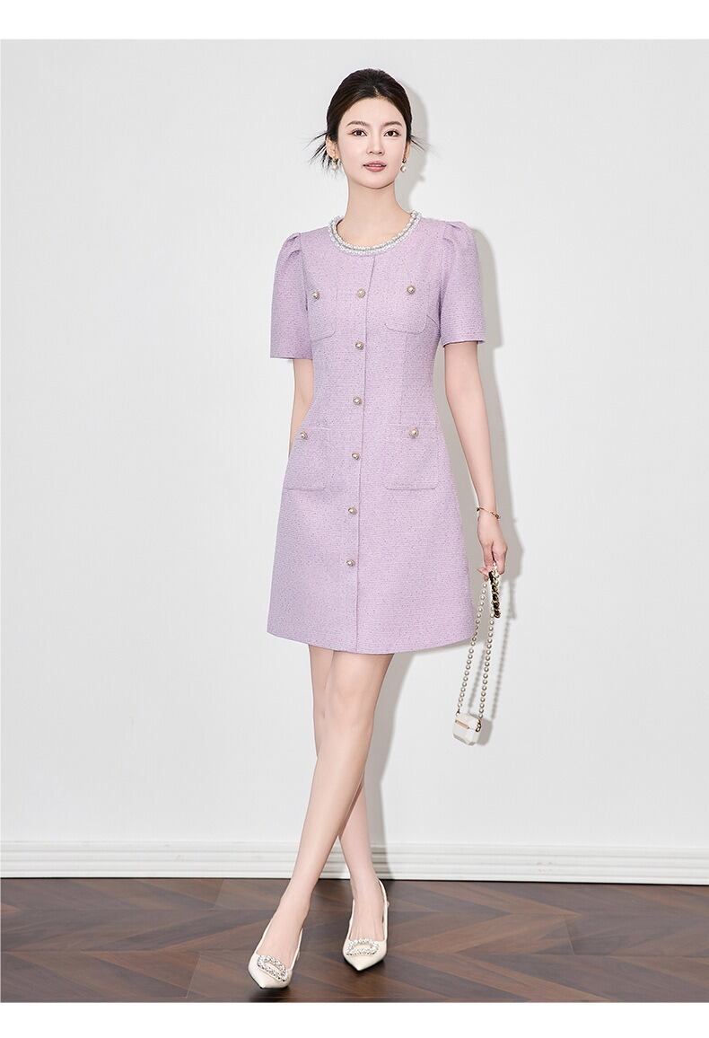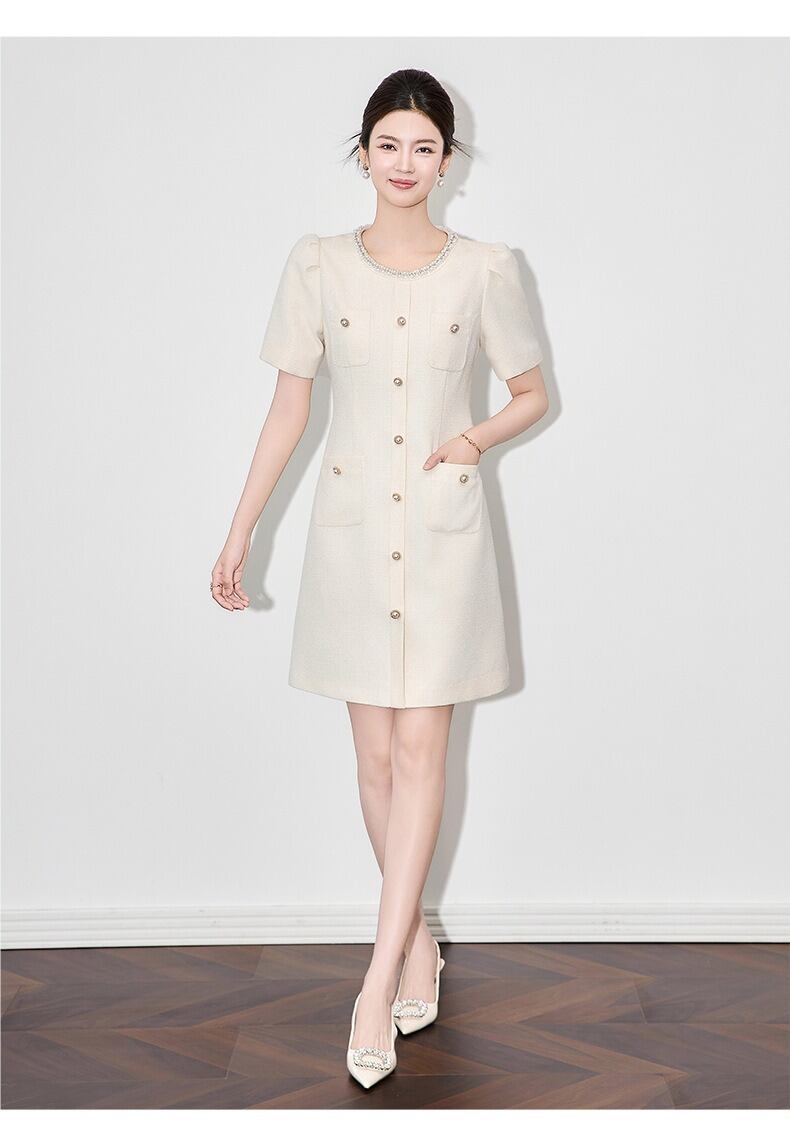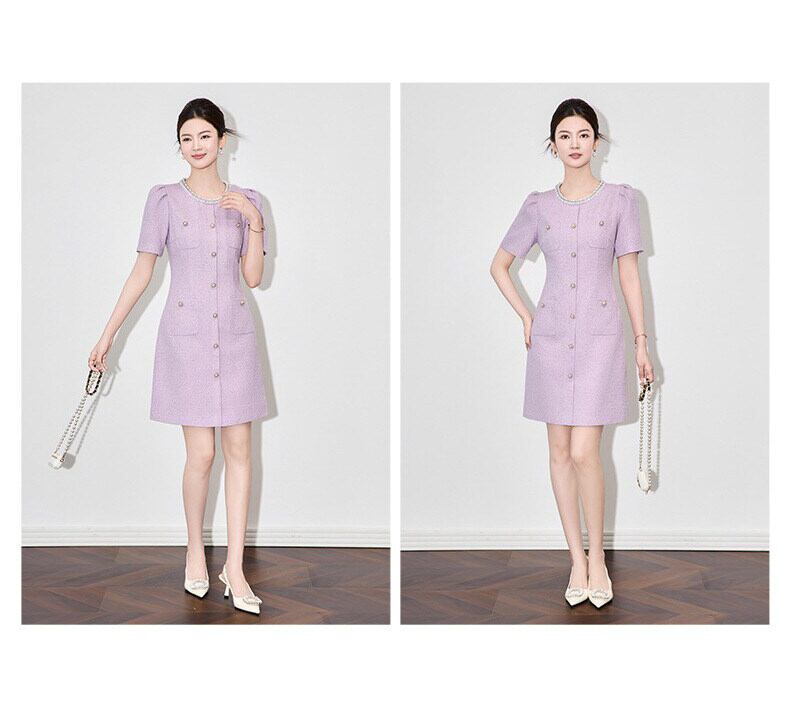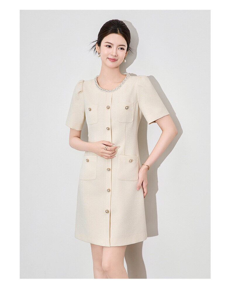 ふんわりと広がるAラインシルエットが女性らしさを引き立てる、半袖ワンピース。
