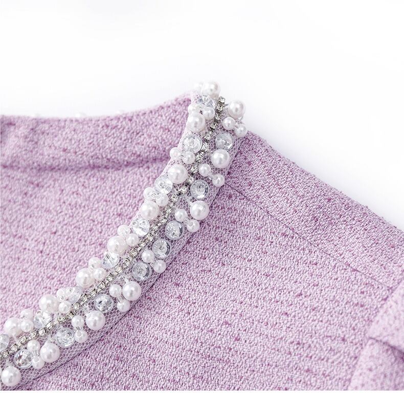 パール装飾とボタンが上品なアクセントとなり、きれいめにもカジュアルにも着こなせます。