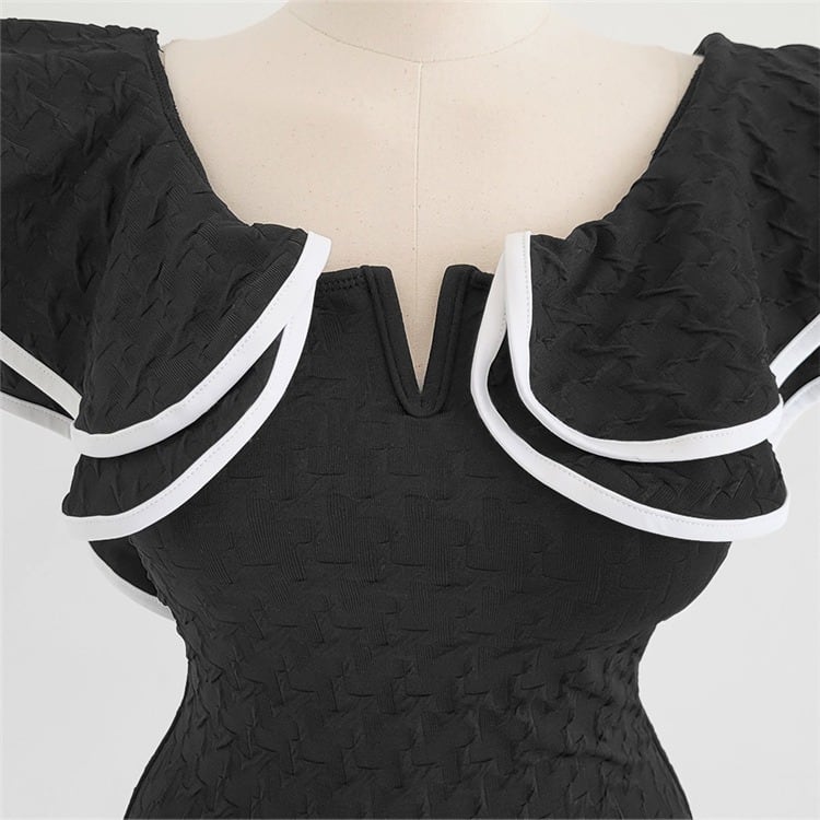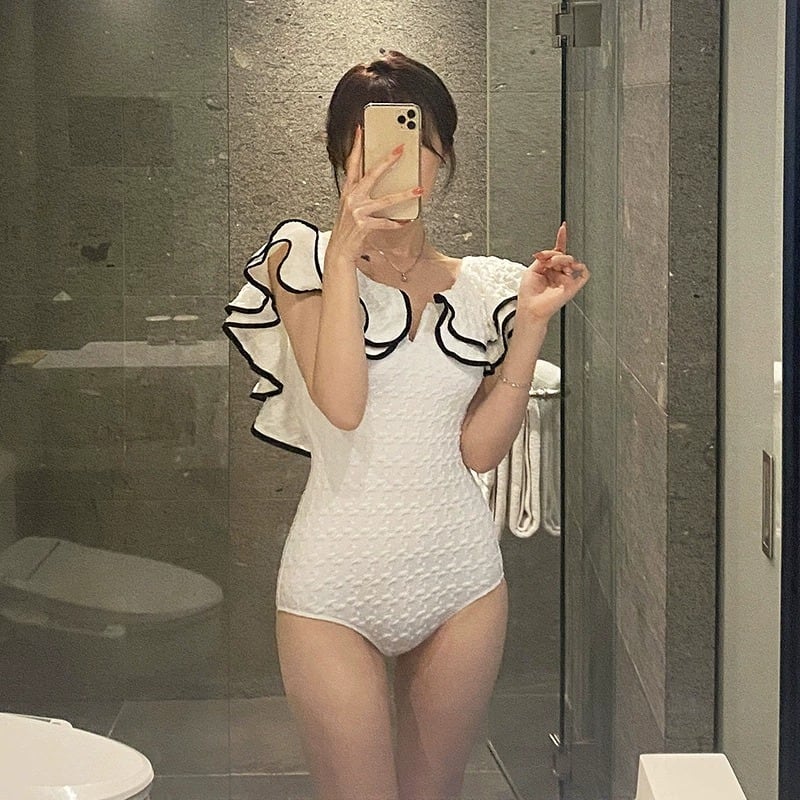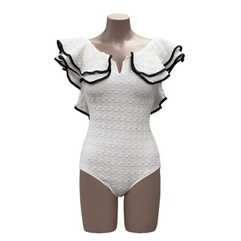 立体感のあるフリルショルダーが華やかで、大人可愛い印象を与えるワンピース水着。