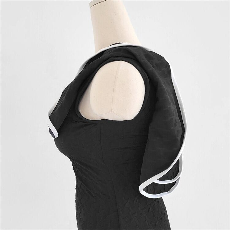 二の腕やウエストをさりげなくカバーしつつ、背中見せデザインで抜け感と女らしさも演出。