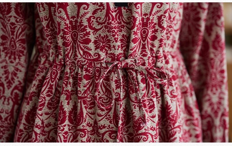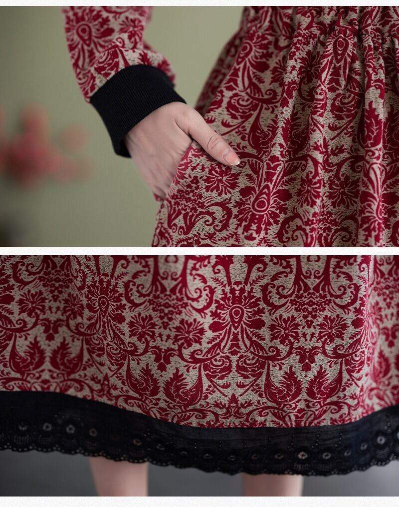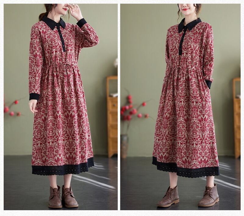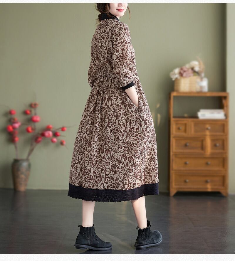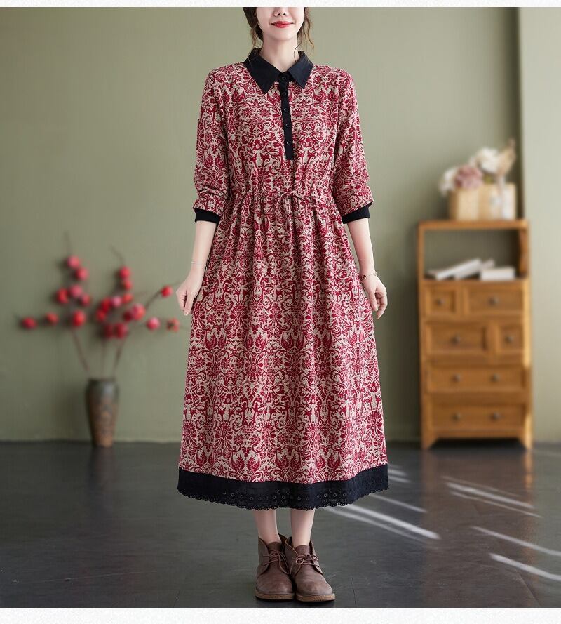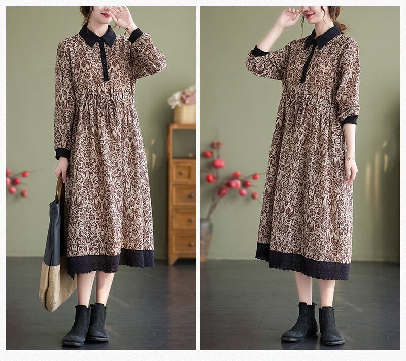 花柄で上品なミドル丈の長袖のシャツワンピースです。