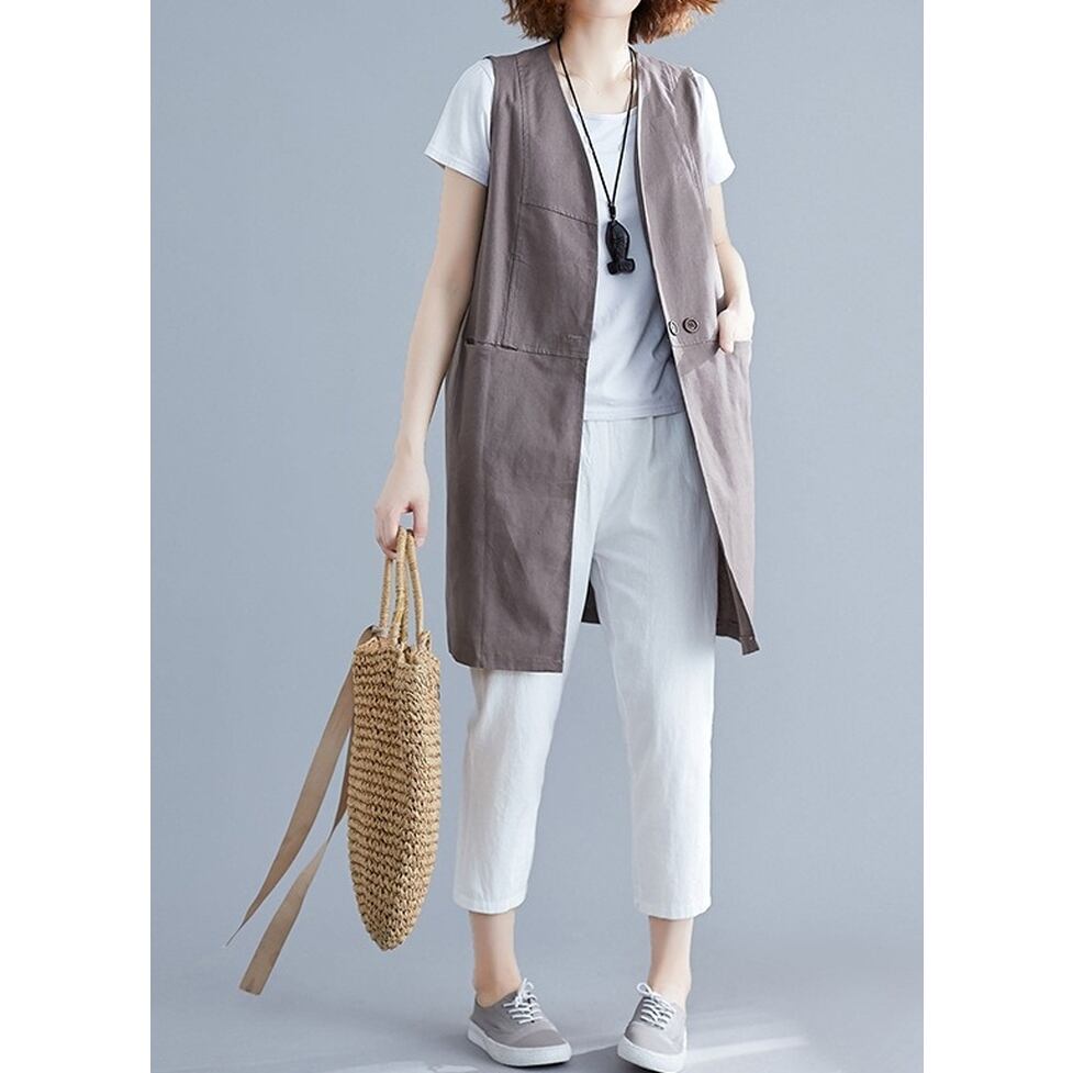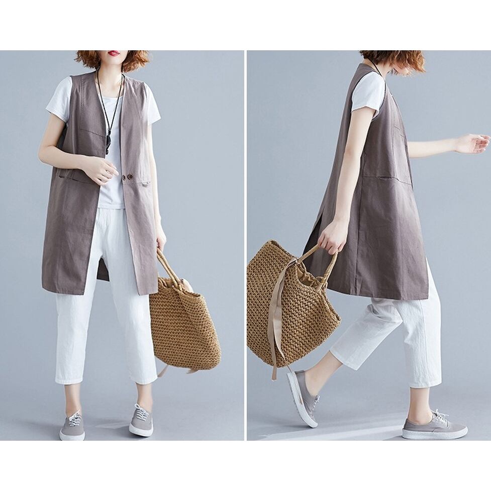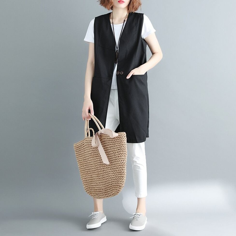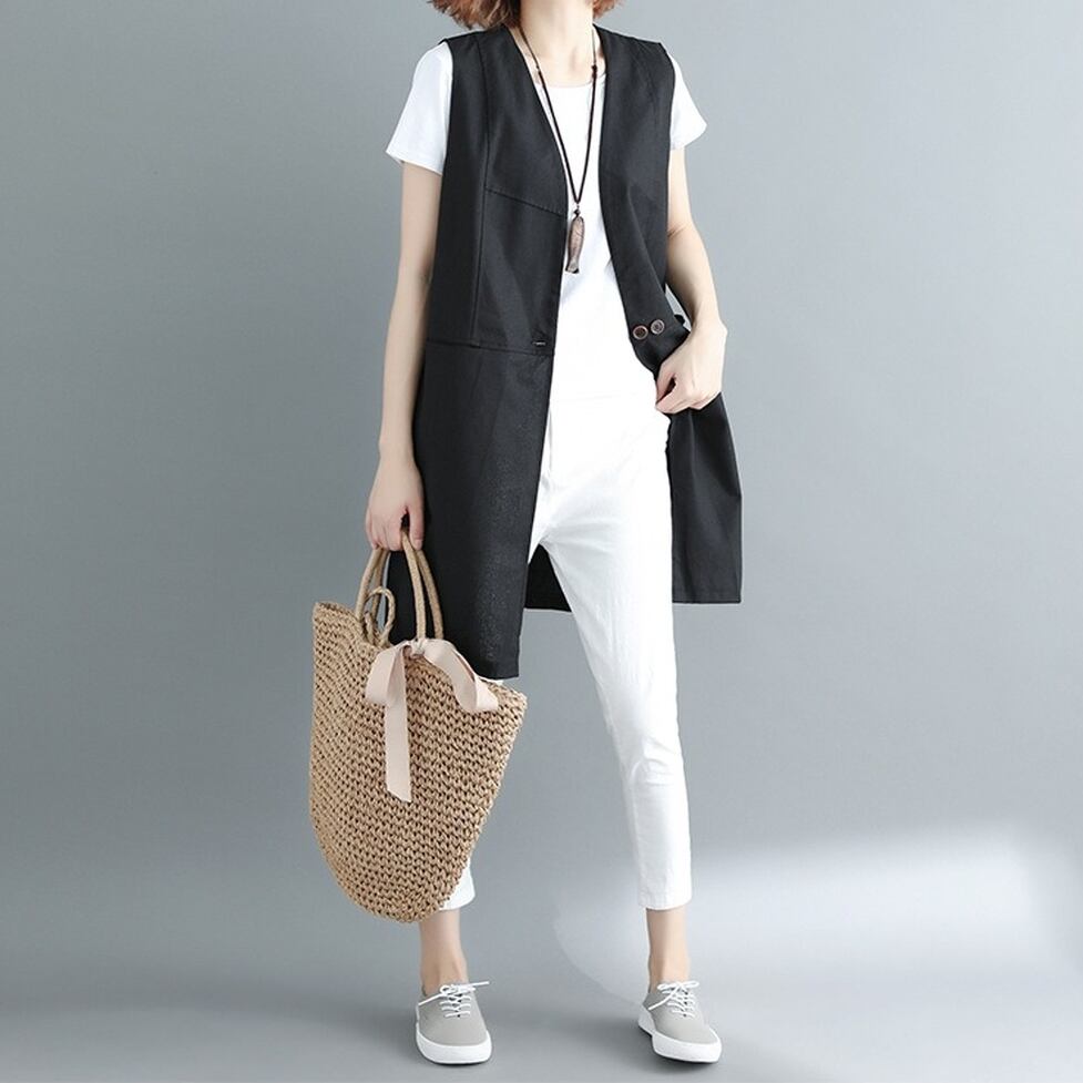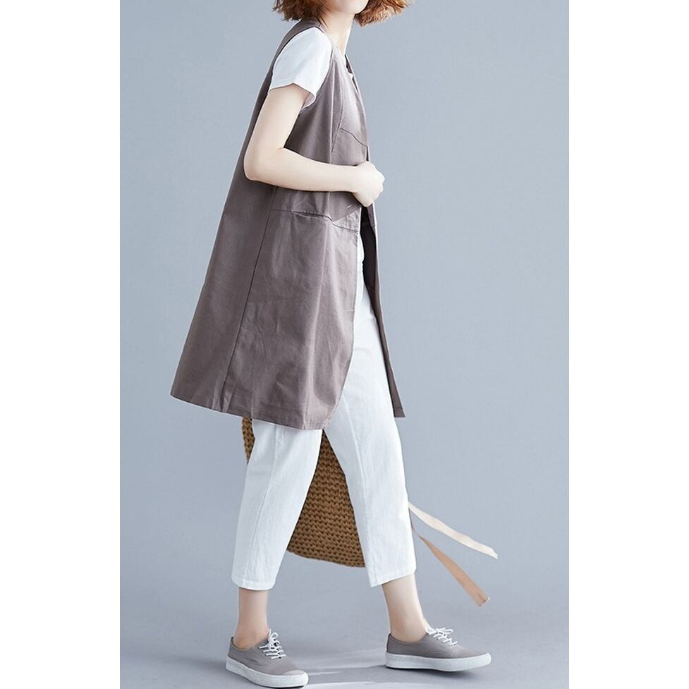 シンプルな切り替えデザインが特徴のロングジレ。涼しさときちんと感を両立するスマートな選択肢。コーディネートの完成度を高めてくれる名品。ほんのりマニッシュな印象を与えながら洗練と信頼感を演出する着こなしに