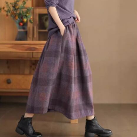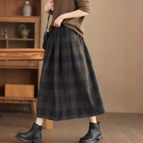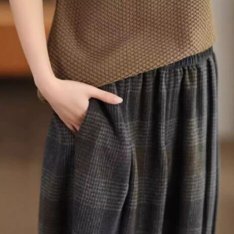 ウエストゴムで脱ぎ履きしやすく、秋冬のお出かけコーデにおすすめの一枚