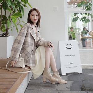 おしゃれ度UP!大人可愛いショートブーツです。女性らしいデザインと機能性を兼ね備えた一足です。太ヒールで脚長効果をもたらし、あなたのスタイルを美しく引き立てます。厚底の柔らかい素材は、体に優しく、長時間の履いても快適です。