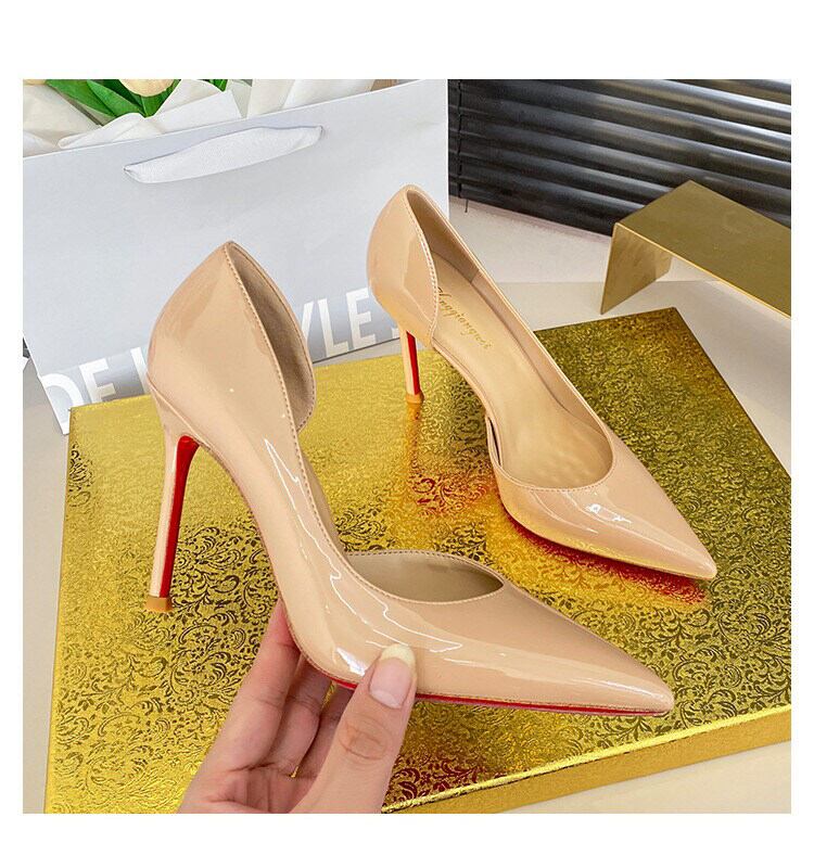 エレガントさと可愛らしさを両立した、ハイヒールのポインテッドトゥサイドオープパンプス。