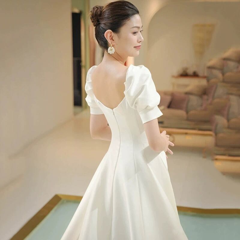 背中は大胆に開いたバックスタイルで、後ろ姿まで美しく魅せてくれます。