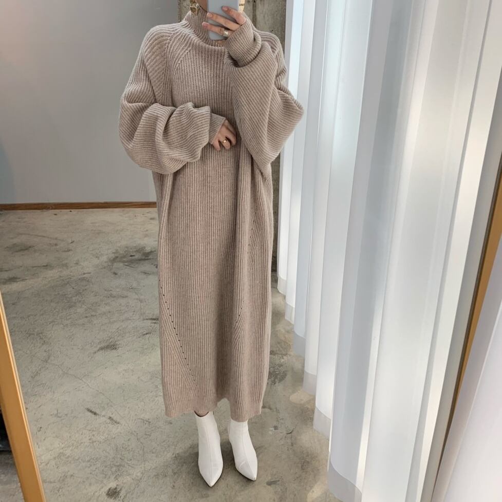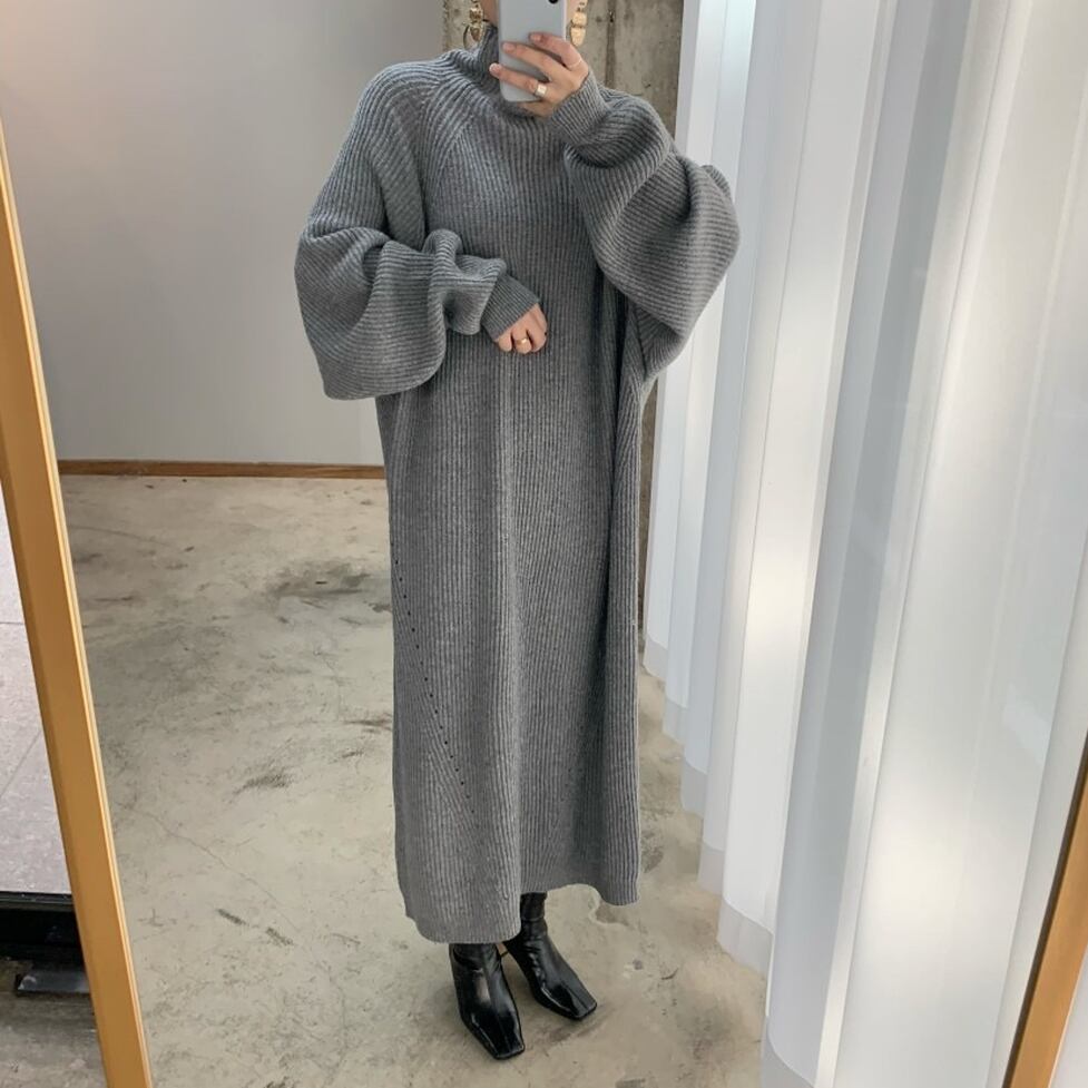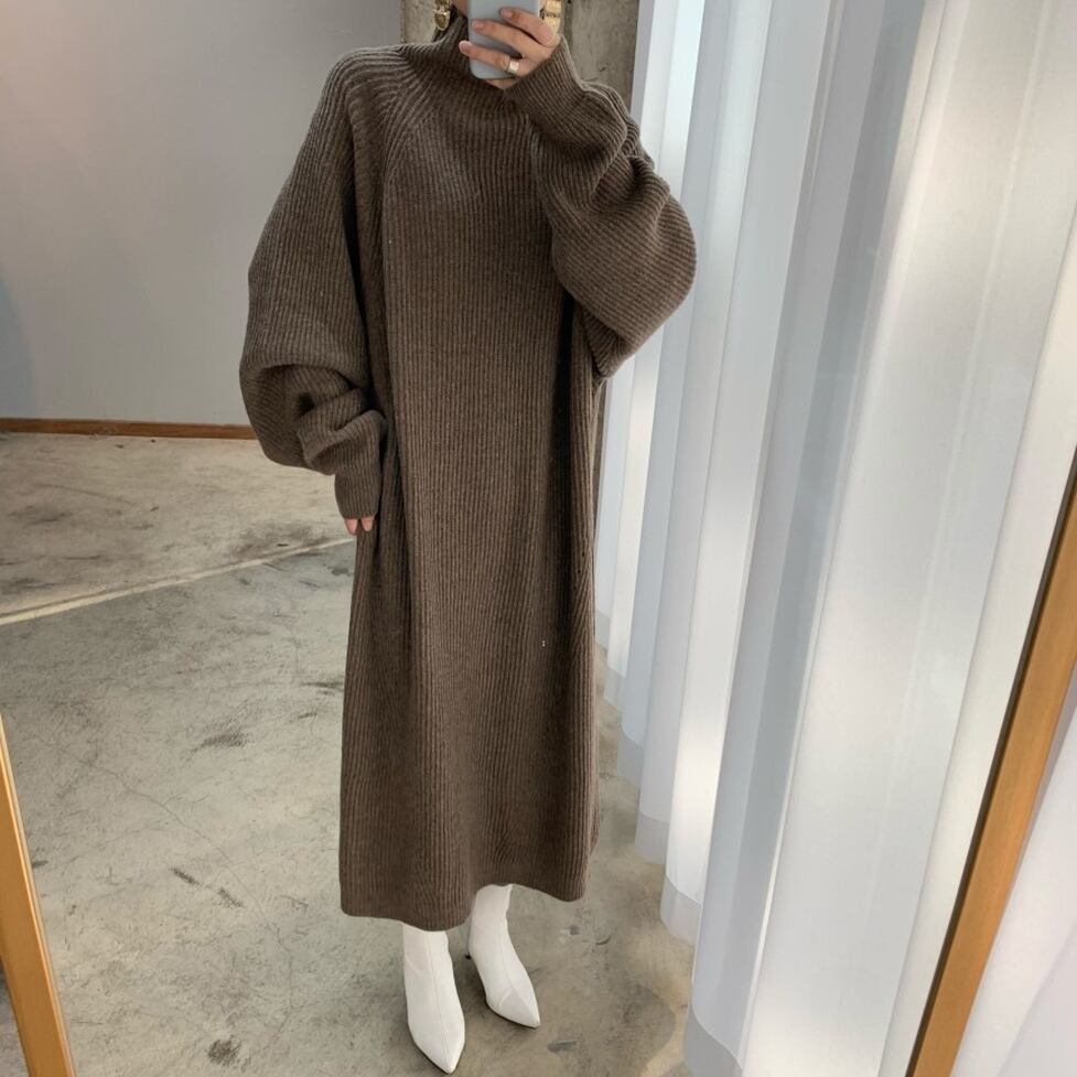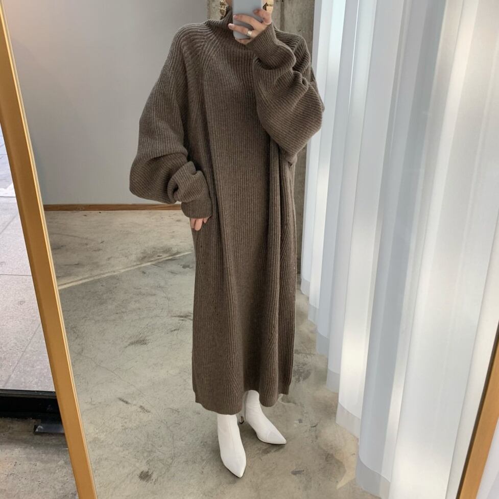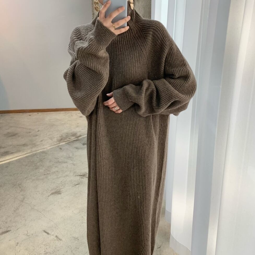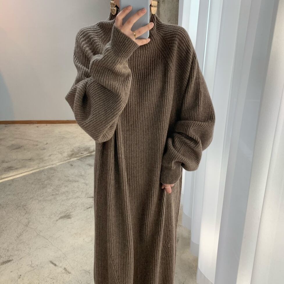ストンとしたシルエットで体型をカバーしてほっそり魅せるリブニットがポイントのロングワンピース。スタイルがキレイに見えるよう計算された仕立てもポイント。レディな印象に寄せられるキレイなルックスに昇華