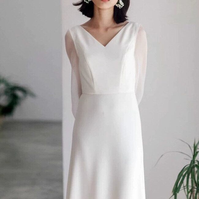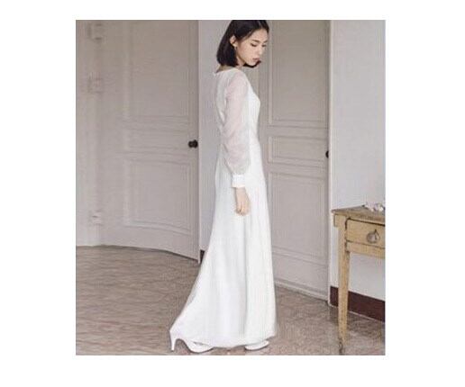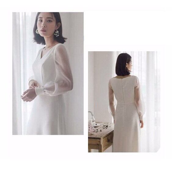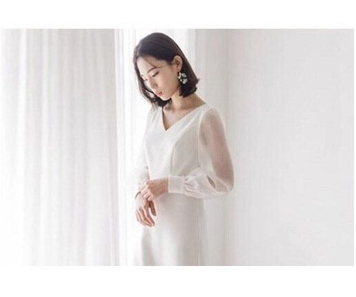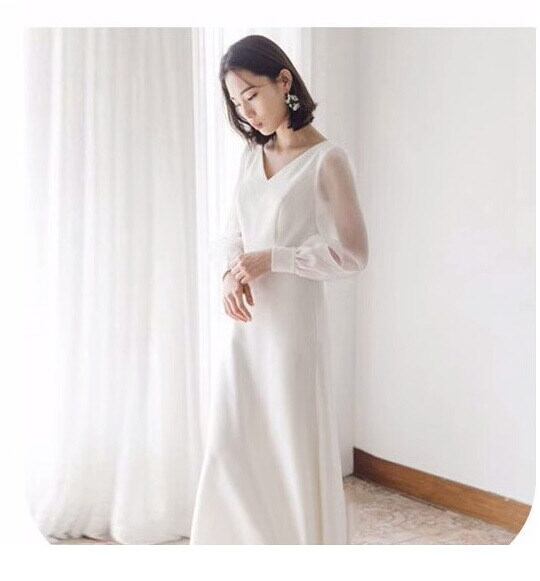 柔らかな透け感が魅力のパフスリーブ×Vネックの絶妙なバランスが大人可愛い印象を演出するロングワンピースです。