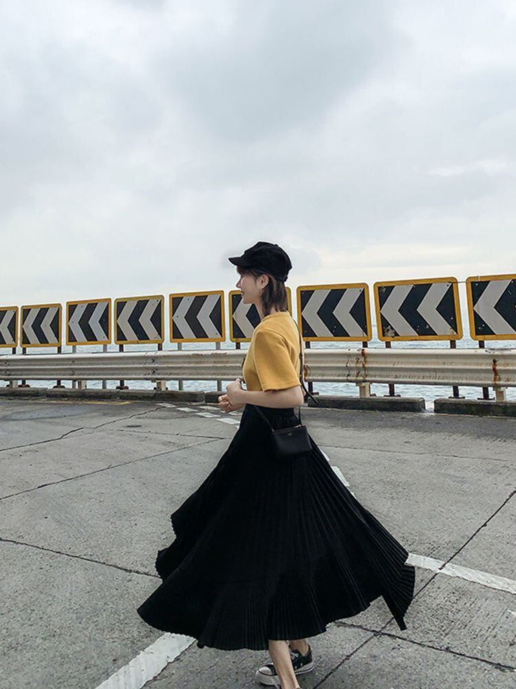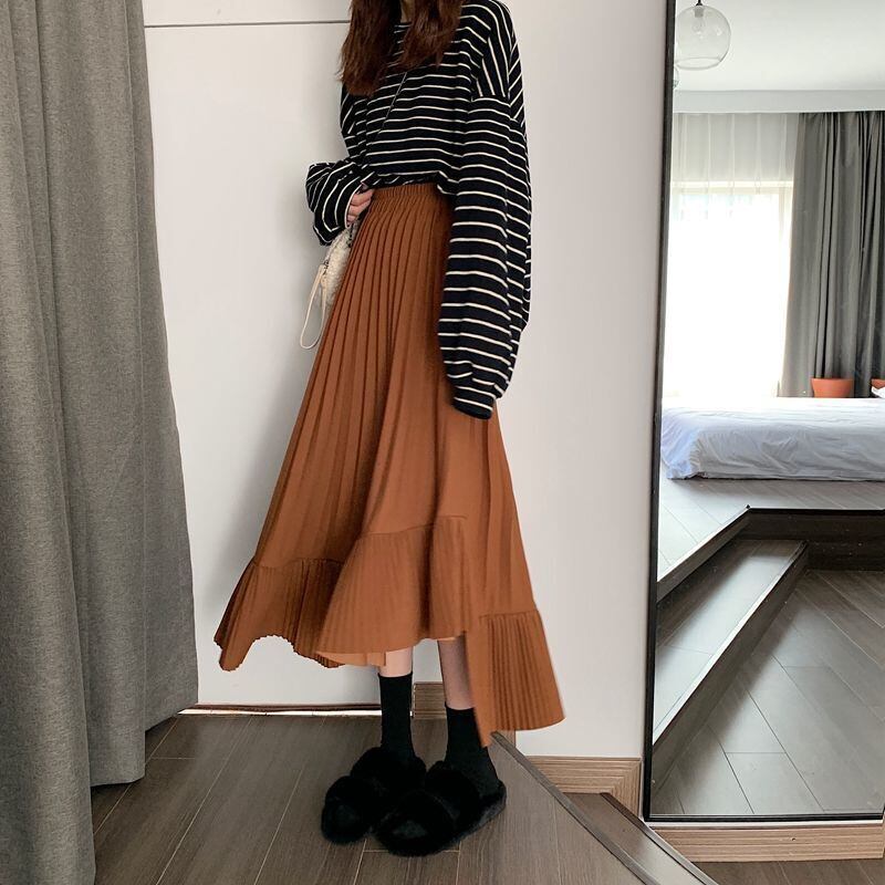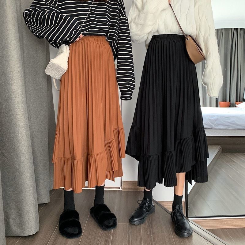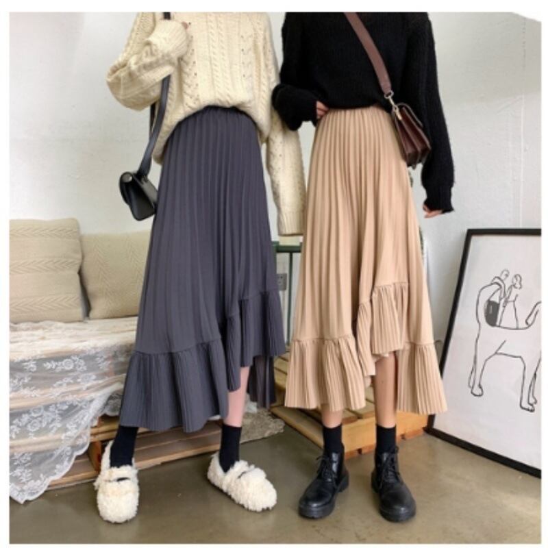 動きに合わせて揺れるプリーツが魅力的な、アシンメトリーデザインのプリーツスカート。