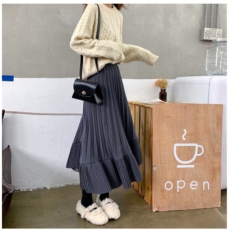 裾に太さの異なるプリーツ切り替えデザインを取り入れることで、シンプルながら存在感を発揮します。
