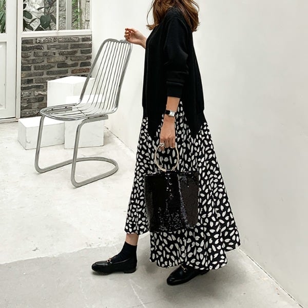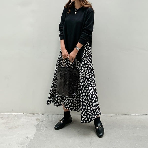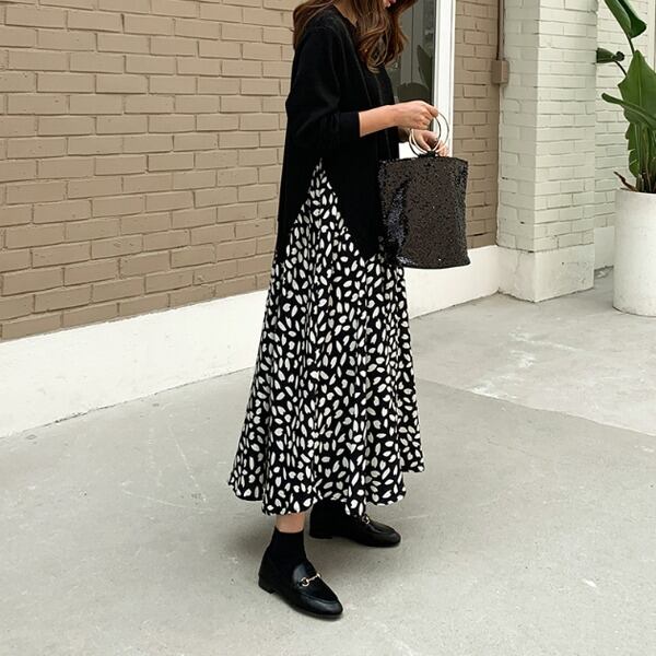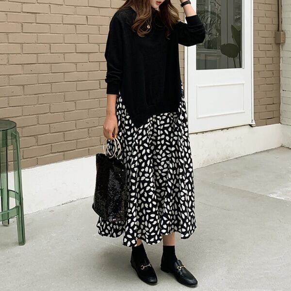 こちらは大人可愛いスタイルを叶える、ロングスカートワンピースです。
