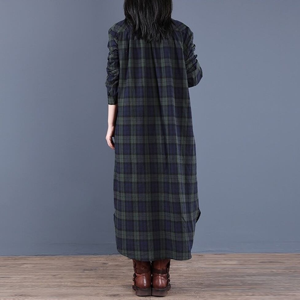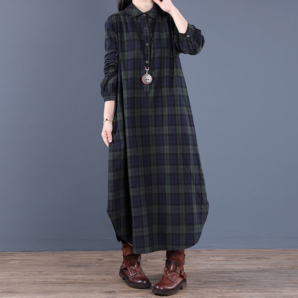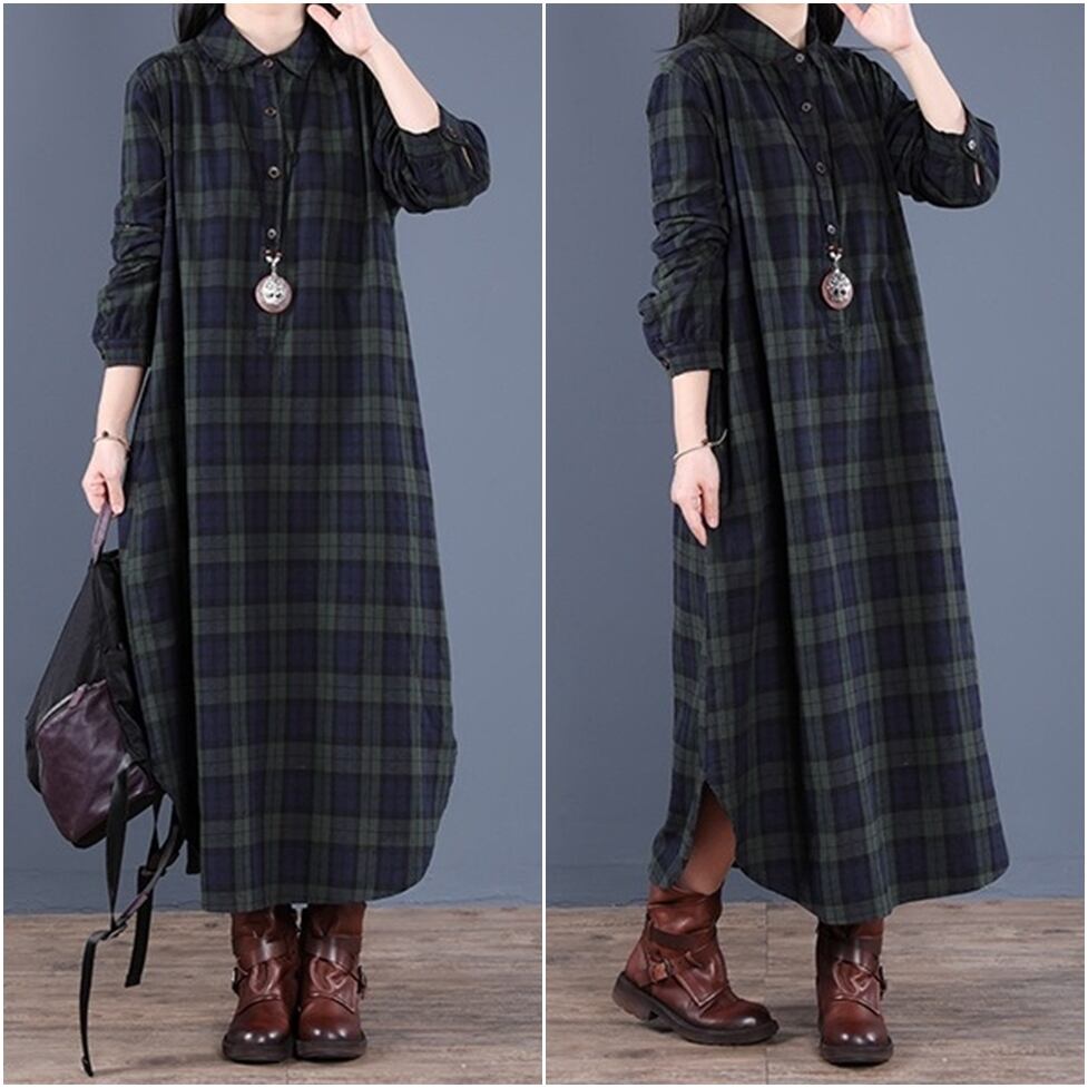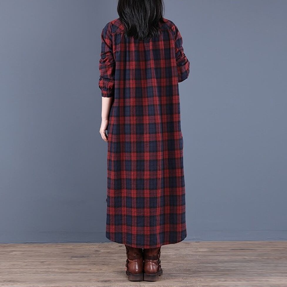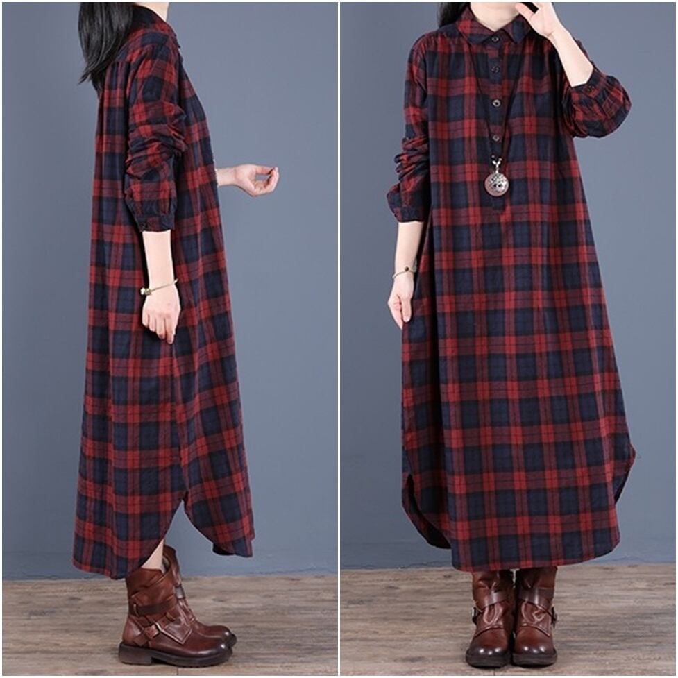 カジュアルなチェック柄をリラクシーな大人スタイルに仕上げたシャツワンピース。女性らしさと洒落感を同時に得られる。しなやかさとマッチするデザインで華奢見えに効果的
