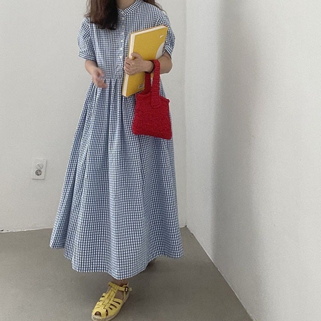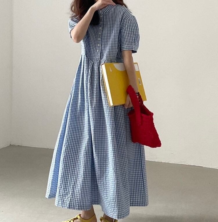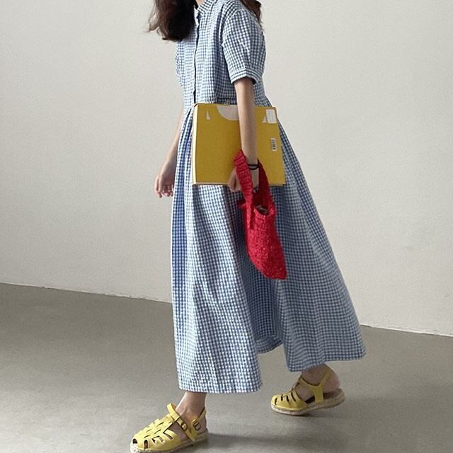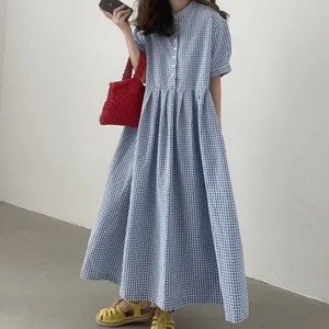 春夏にぴったりのチェック柄のマキシワンピースです。