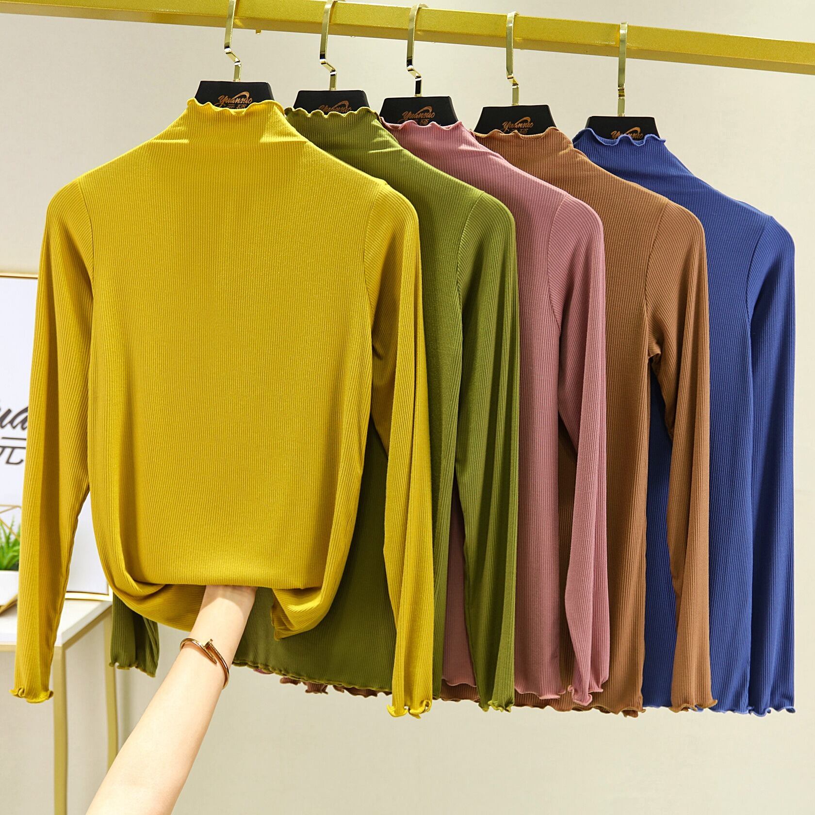 大人可愛らしいデザインのタートルネックのカットソーです。 長袖のフリルが特徴的で、上品な印象を与えつつも、カジュアルなスタイルにぴったり! タイトでスリムなシルエットが体のラインを美しく見せ、どんなシーンでもおしゃれに決まります。 春秋冬問わず、オフィスやデート、女子会、休日のお出かけなど、多様なシーンで活用できます。 豊富なカラーバリエーションも魅力で、ママやマタニティにもおすすめな1枚です。 色展開 イエロー ピンク ホワイト レッド グリーン ブルー ブラウン カーキ ライトグレー サイズ M L XL 2XL サイズ(cm) M /着丈 58 /バスト 76〜105 /肩幅 35 /袖丈 53 L /着丈 60 /バスト 80〜113 /肩幅 36 /袖丈 55 XL /着丈 62 /バスト 85〜120 /肩幅 38 /袖丈 57 2XL /着丈 63 /バスト 88〜128 /肩幅 40 /袖丈 59 《商品について》 当ショップで取り扱っている商品は、海外で製造されたノーブランド品となっております。 日本製品と比べて、縫い目の粗さ、小さなほつれ、軽微な汚れやシミ、ファスナーのかたさ、形やサイズのばらつき、仕様の細かな違い、その他仕上げの甘さなどが見られる場合がございます。 サイズは平置きでの実寸を記載しておりますが、測定方法や生産工程の違いにより、最大で3cm程度の誤差が生じる場合がございます。 これらは製品の特性であり、不良品には該当いたしませんので、あらかじめご了承ください。 また、ご利用のモニターやスマートフォンの設定などにより、実物と色味が異なって見える場合がございます。 《発送について》 当ショップの商品はすべてお取り寄せ商品となっております。 ご入金確認後、商品のお届けまでに10〜24日程度のお時間を頂戴しております。 状況により、通常よりお時間をいただく場合もございますので、あらかじめご了承ください。 また、欠品や製品の不具合などにより、ご注文をキャンセルさせていただく場合がございます。何卒ご理解賜りますようお願い申し上げます。 ※ご入金確認後にメーカーへ発注を行っております。 ※メーカーにて在庫切れが確認された場合は、速やかにご返金させていただきます。 《返品についての特約に関する事項》 ご注文確定後のキャンセル、ならびにサイズ・カラー等の内容変更はお受けしておりません。 ご注文の際は内容をご確認のうえ、お間違いのないようご注意ください。商品に不良がある場合を除き、返品・交換はお受けしておりません。 何卒ご理解のほど、よろしくお願い申し上げます。 最後までご覧いただき、誠にありがとうございました。 N-NBL-A02530
