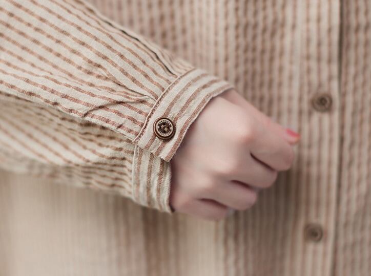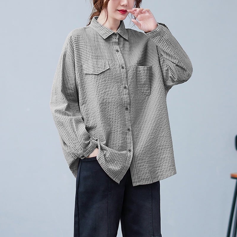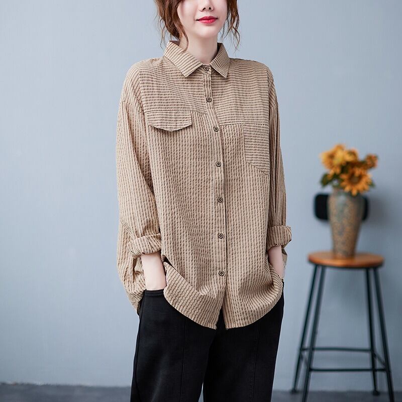大人可愛らしいデザインの前開き長袖ブラウスです。