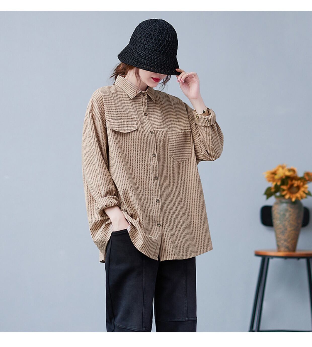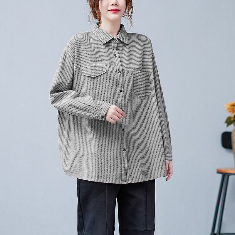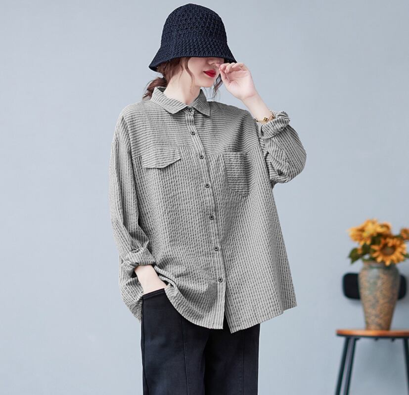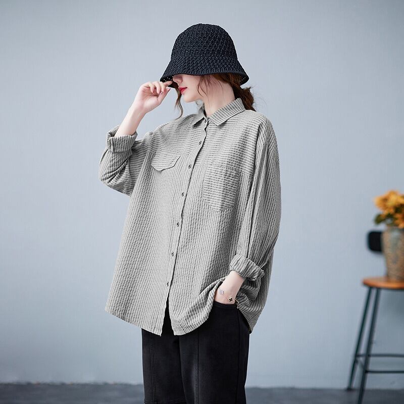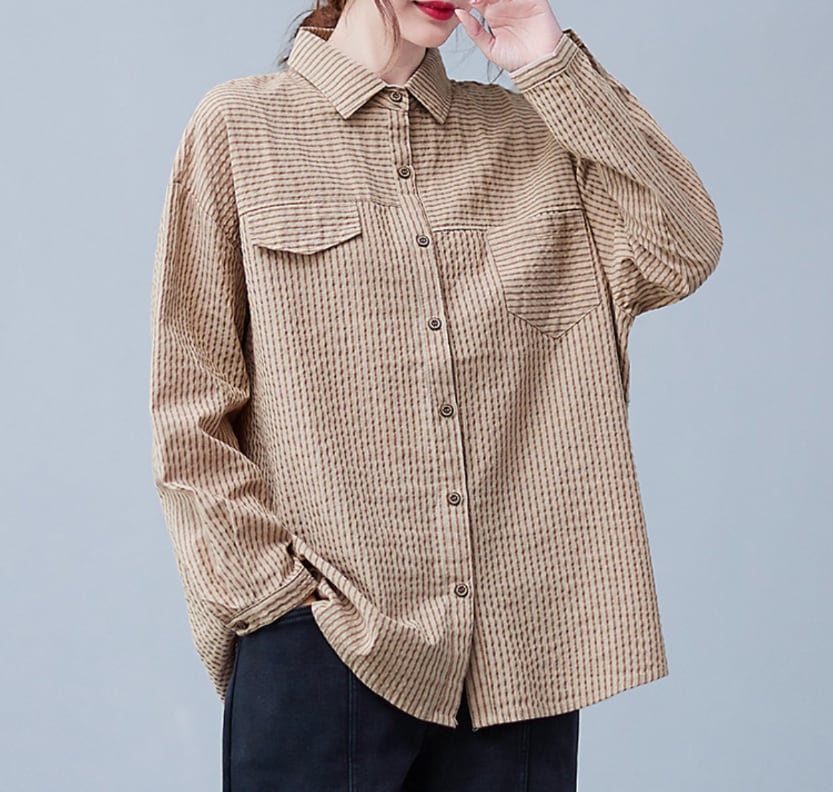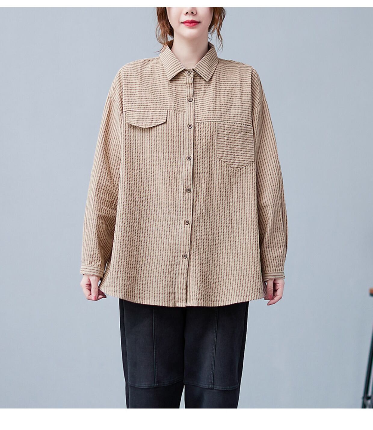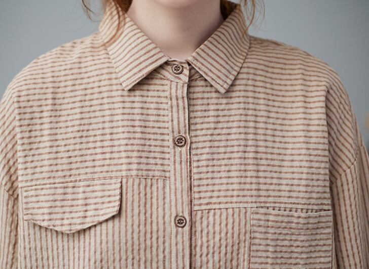 襟付きでシンプルながらもおしゃれな印象を与え、カジュアルスタイルからきれいめなコーディネートまで幅広く活用できます。