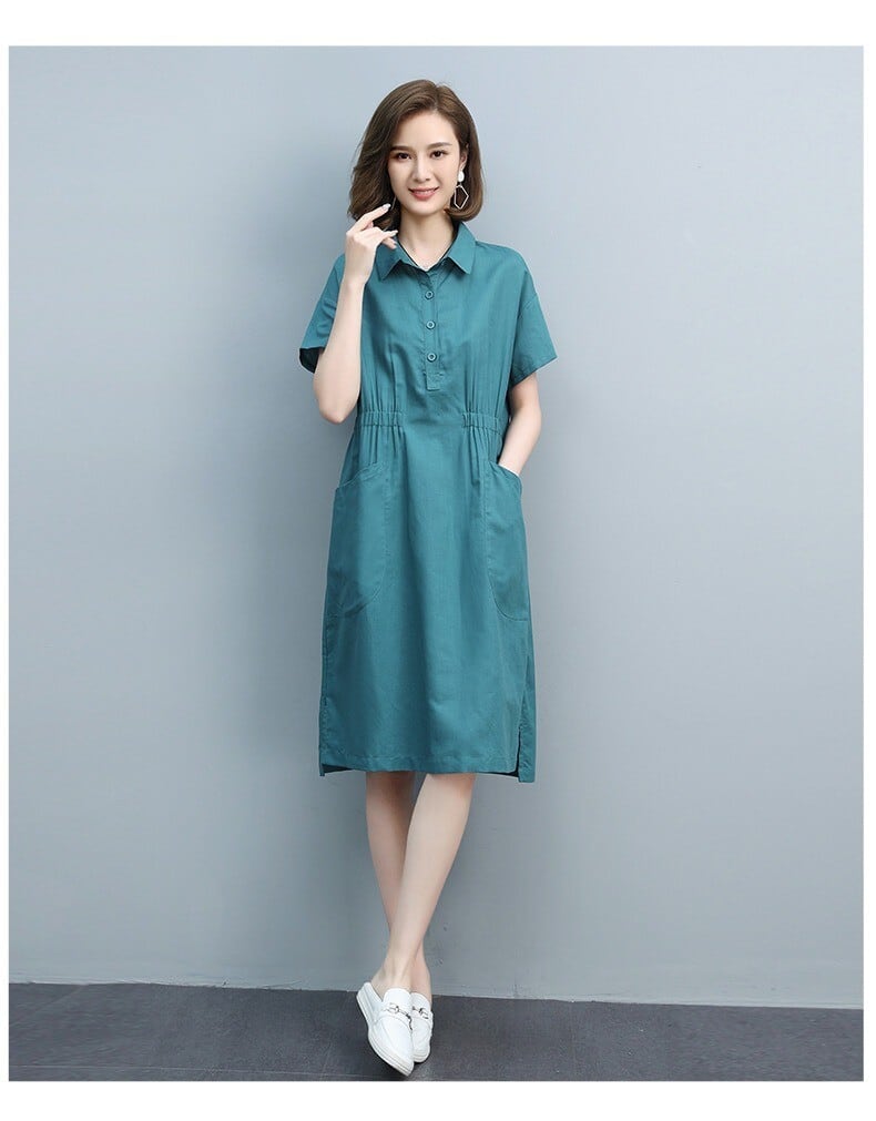 色展開は、アーミーグリーン、ネイビーブルー、青緑の3色で、どのカラーも上品さを引き立てます。シンプルな無地デザインは、アクセサリーや靴との相性も良く、お手持ちのアイテムと合わせて自分らしいスタイルを楽しめます。