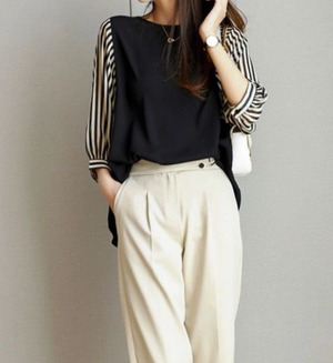 7分袖とクルーネックのデザインが、春から冬までオールシーズンに活躍します。