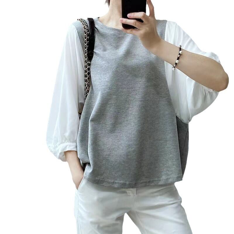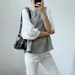 おしゃれで可愛いバルーン袖の重ね着風のプルオーバーです。