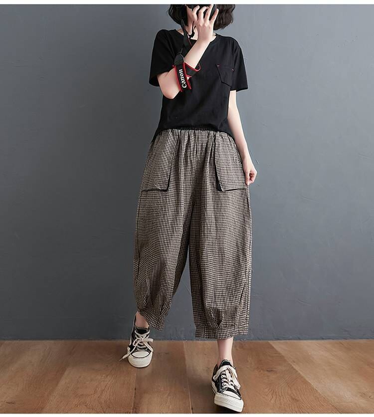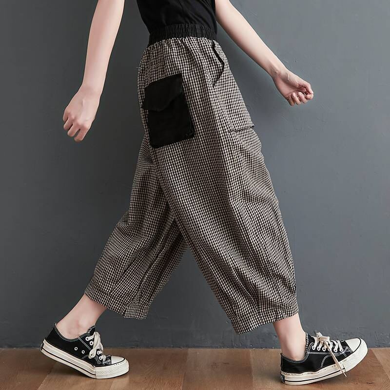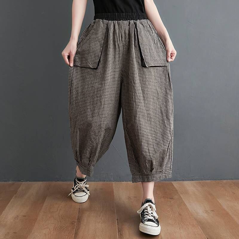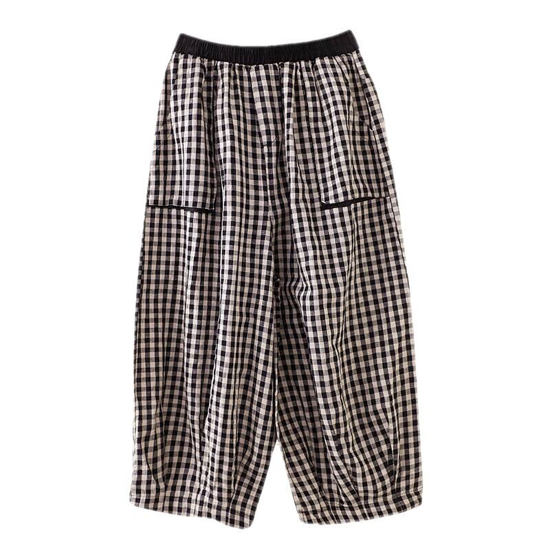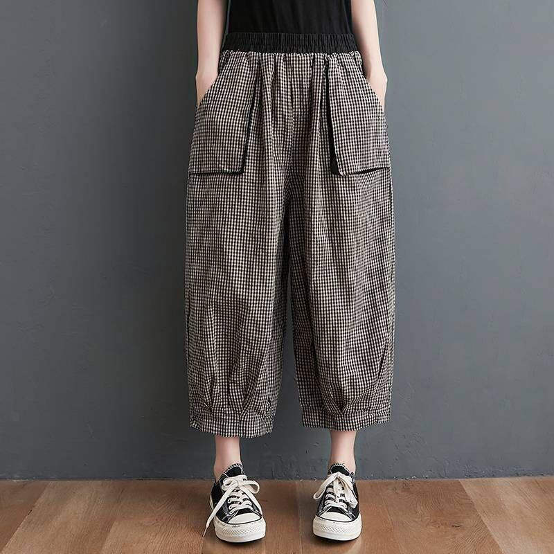 おしゃれで快適なチェック柄のテーパードパンツです。