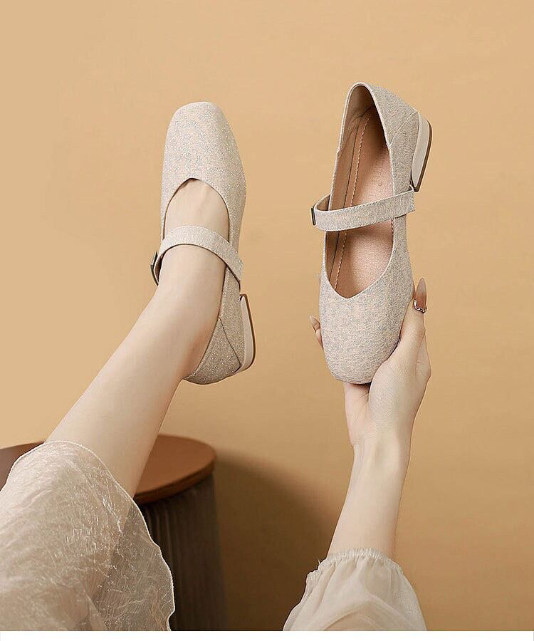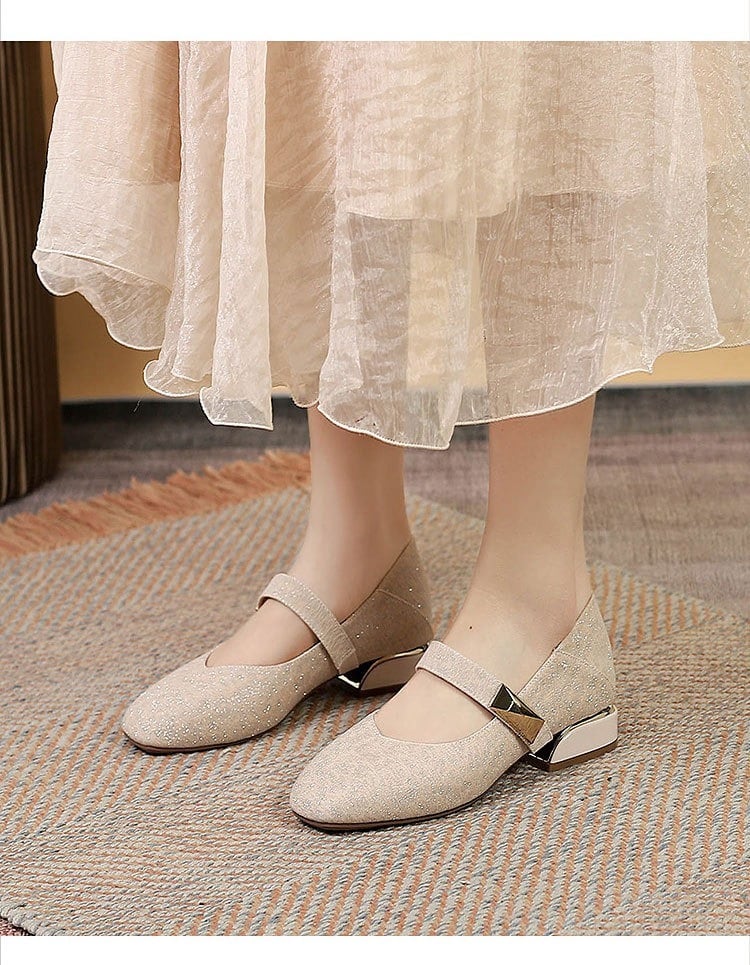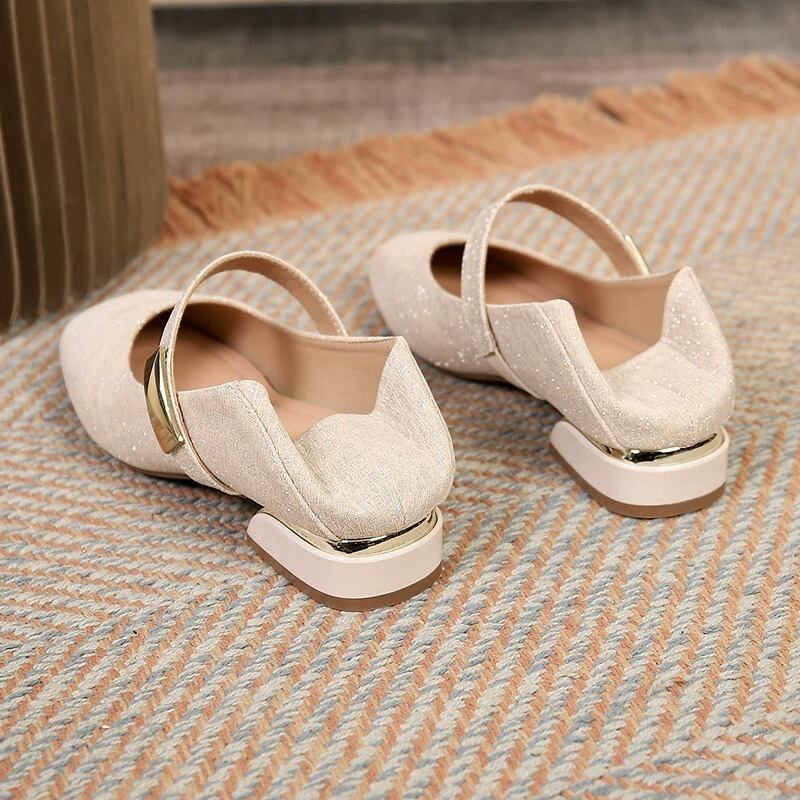 繊細なラメが上品に輝くストラップパンプスは、足元から華やかさを添えてくれる一足。