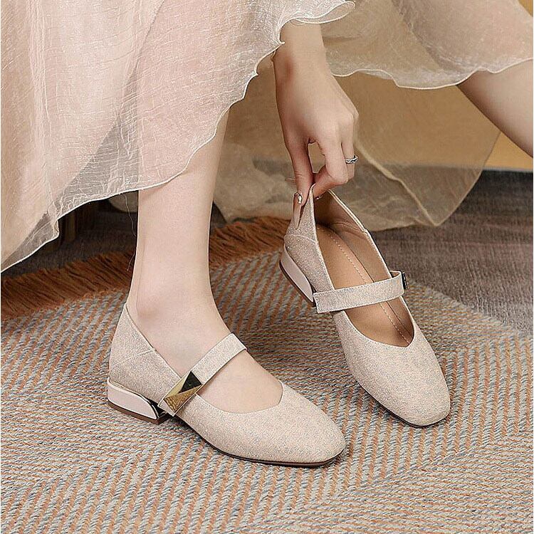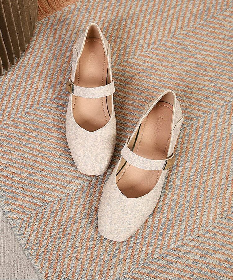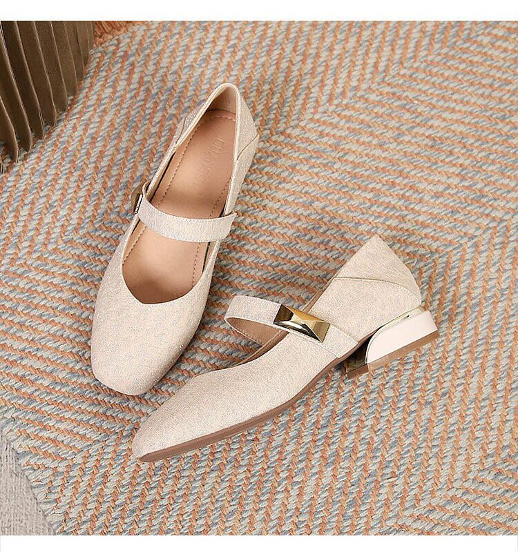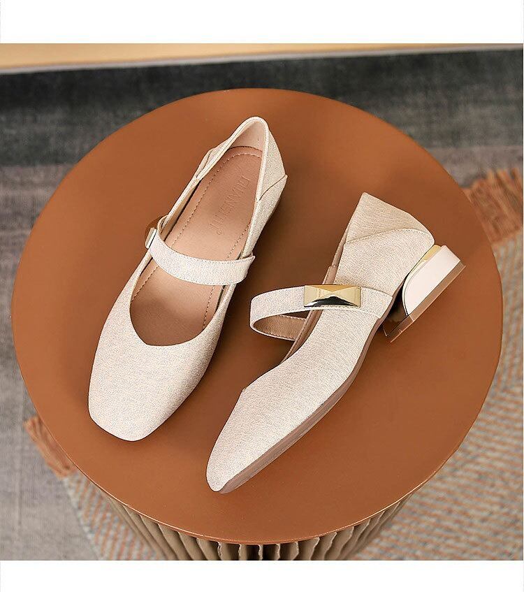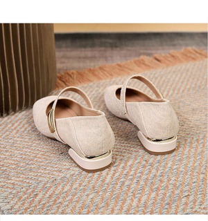 スクエアトゥのデザインが洗練された印象を与え、ゴールドのバックルが程よいアクセントに。