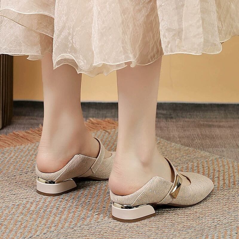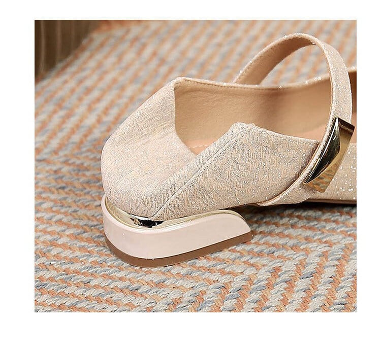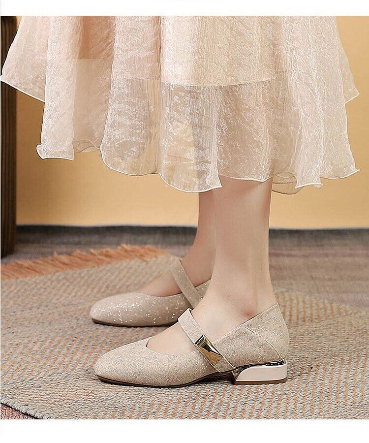 低めのヒールで歩きやすく、長時間のお出かけやパーティーシーンでも快適に過ごせます。