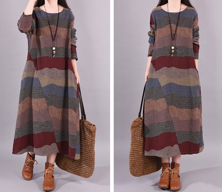 長袖とフレアシルエットが、女性らしいラインを美しく表現します。