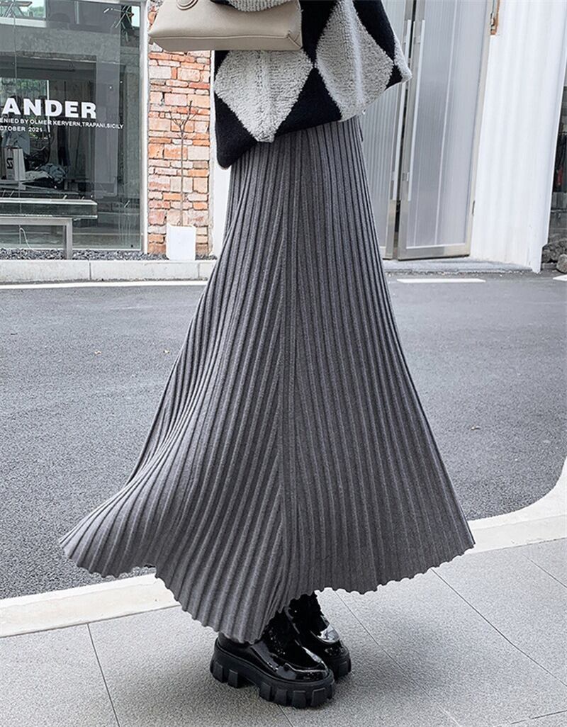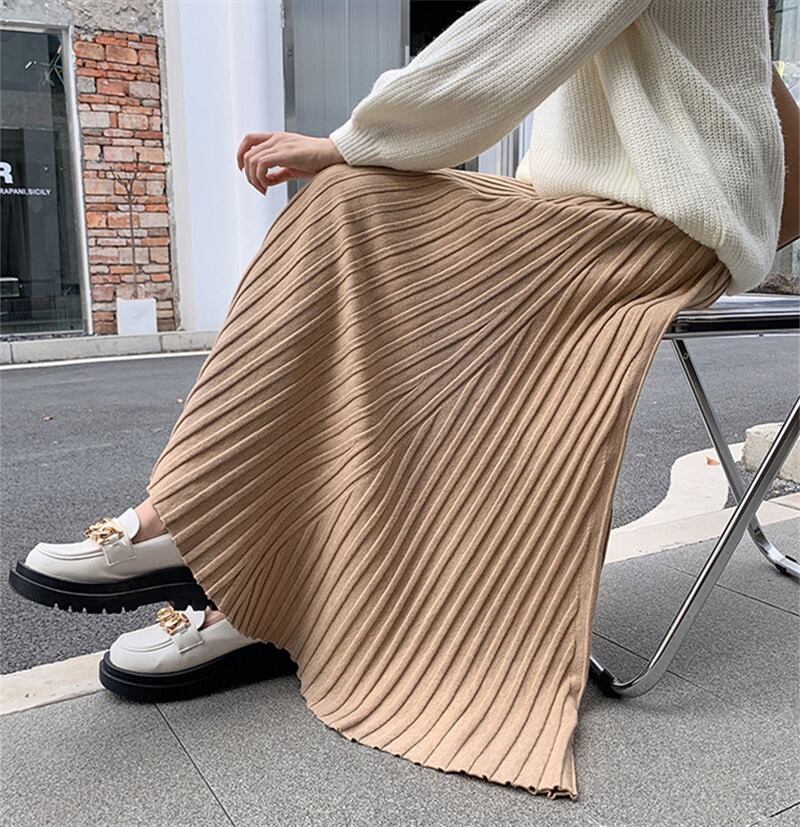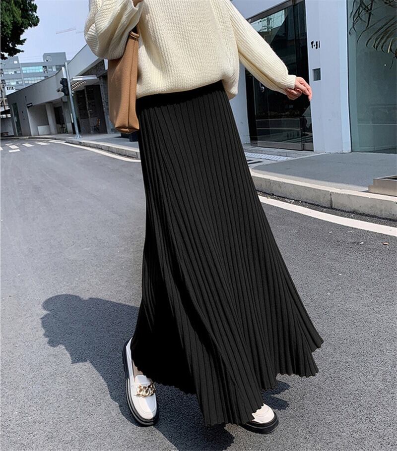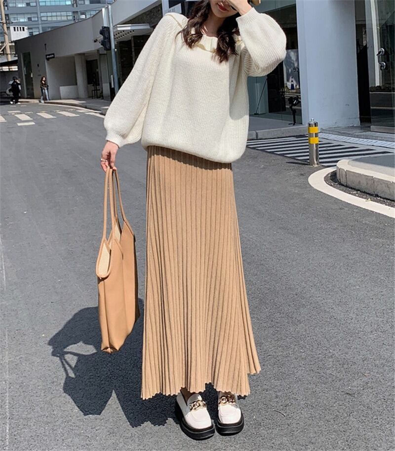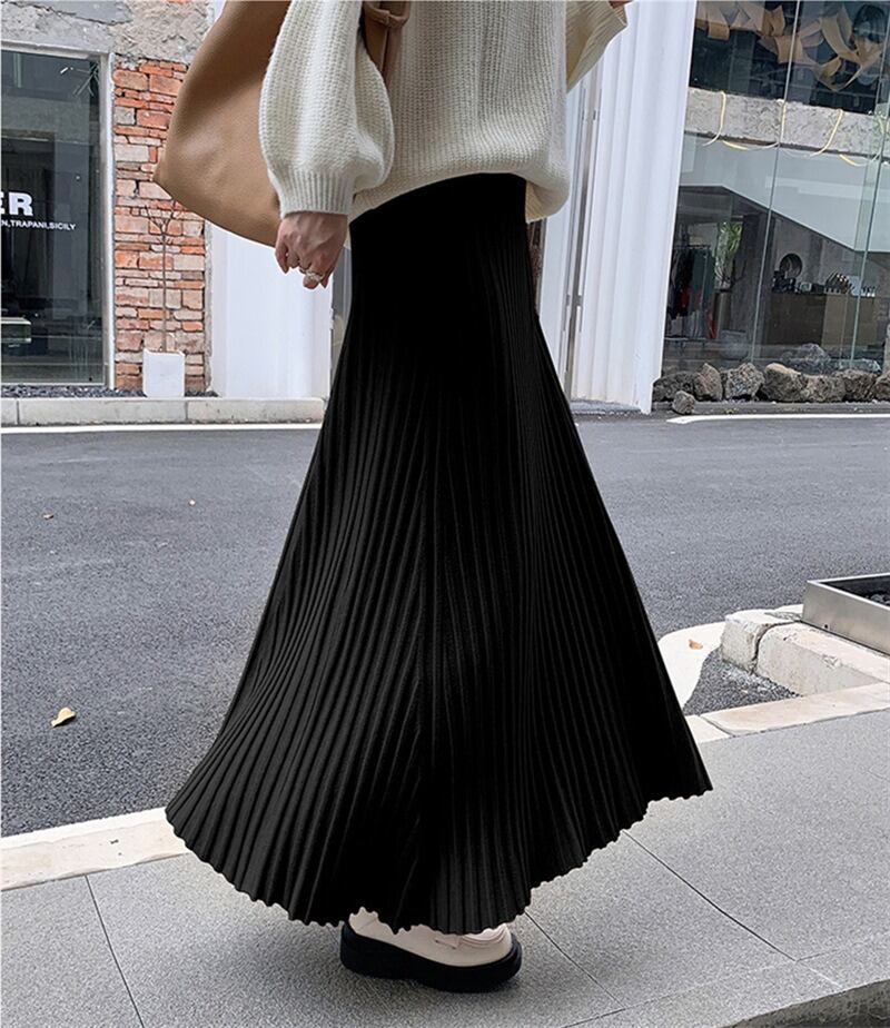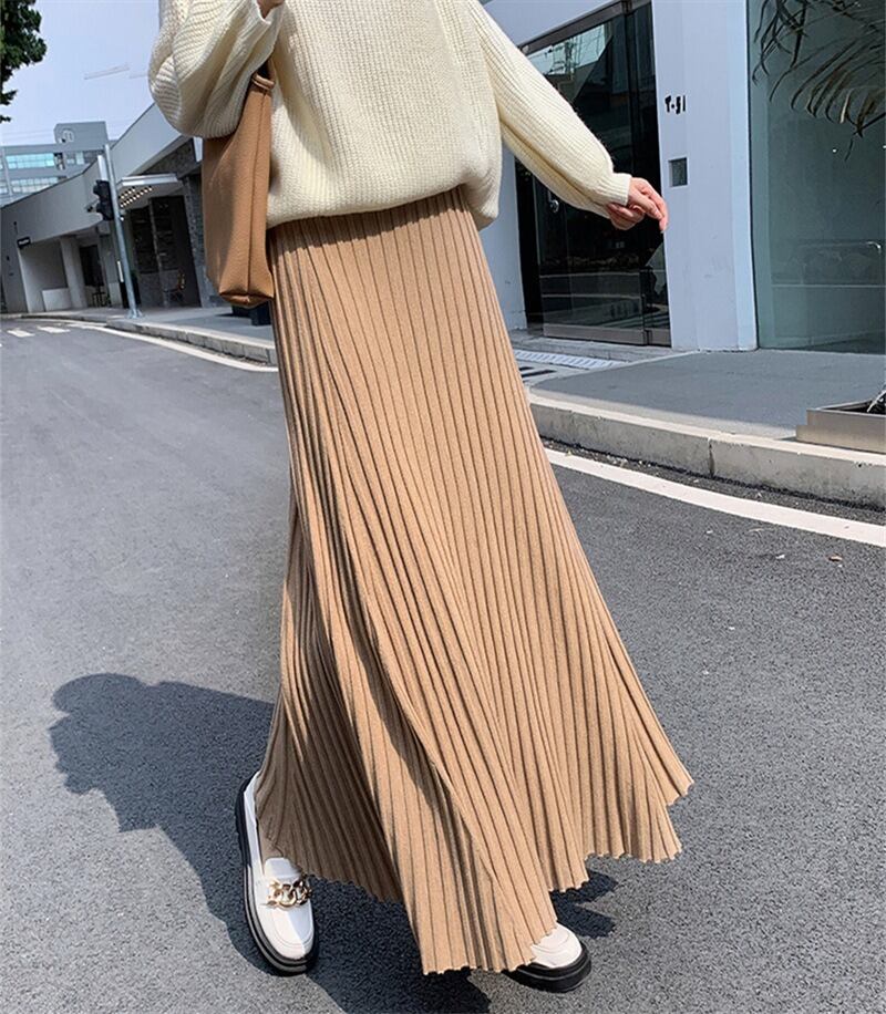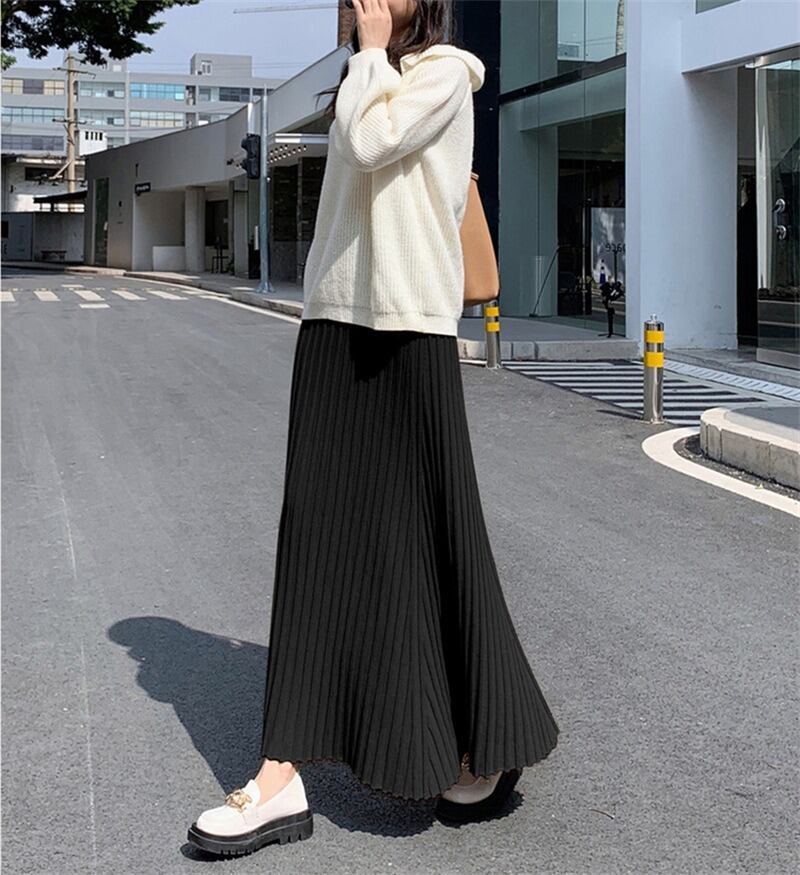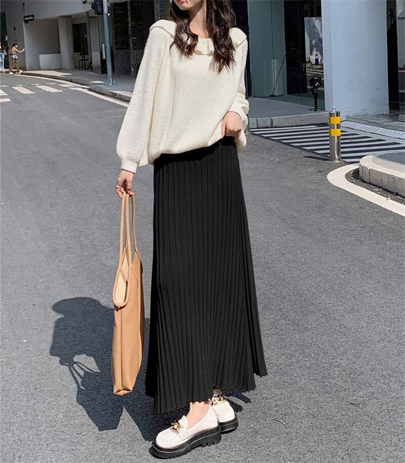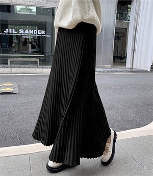 軽やかな揺れ感が魅力のプリーツロングスカートは、春秋の装いにぴったり。