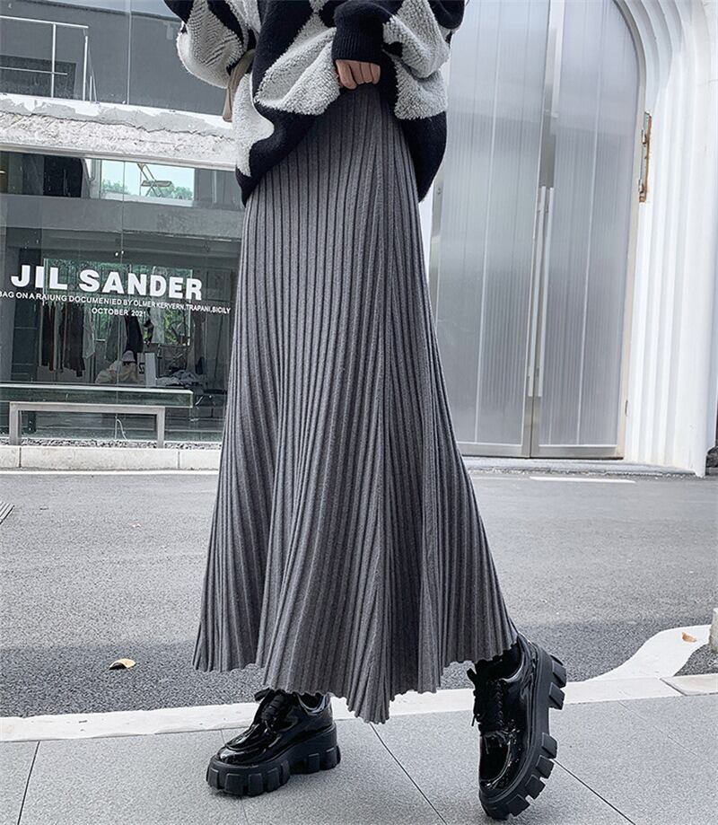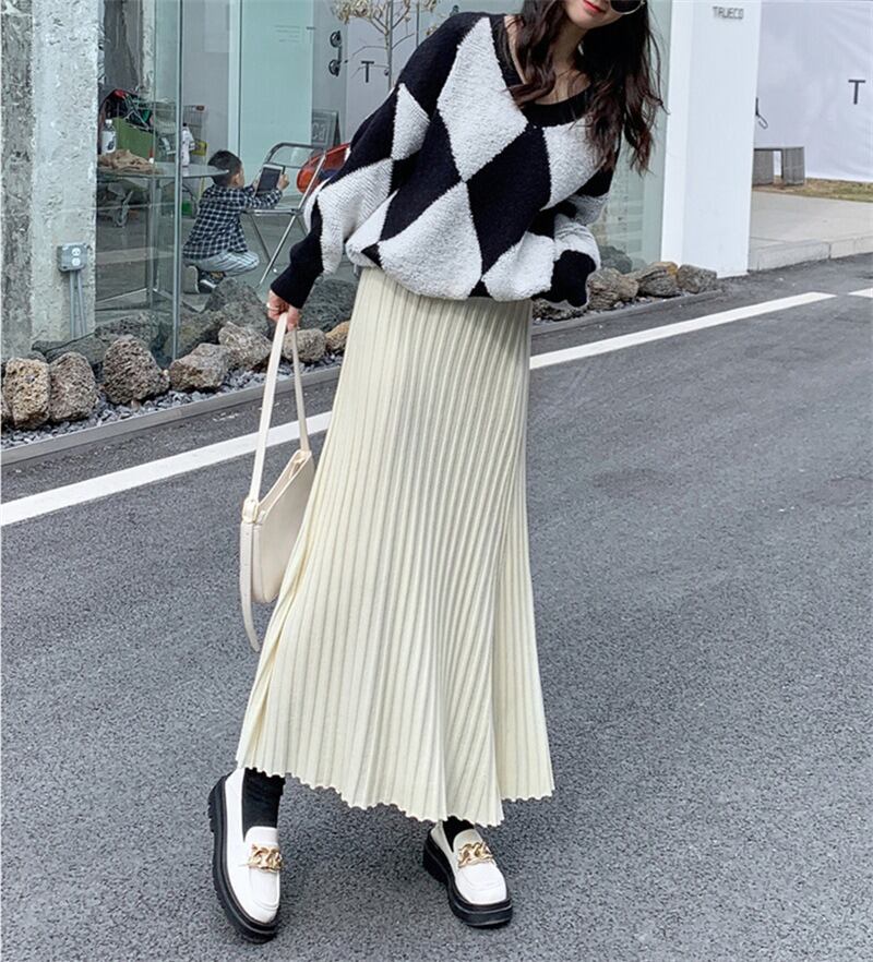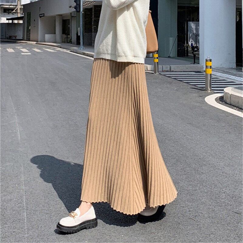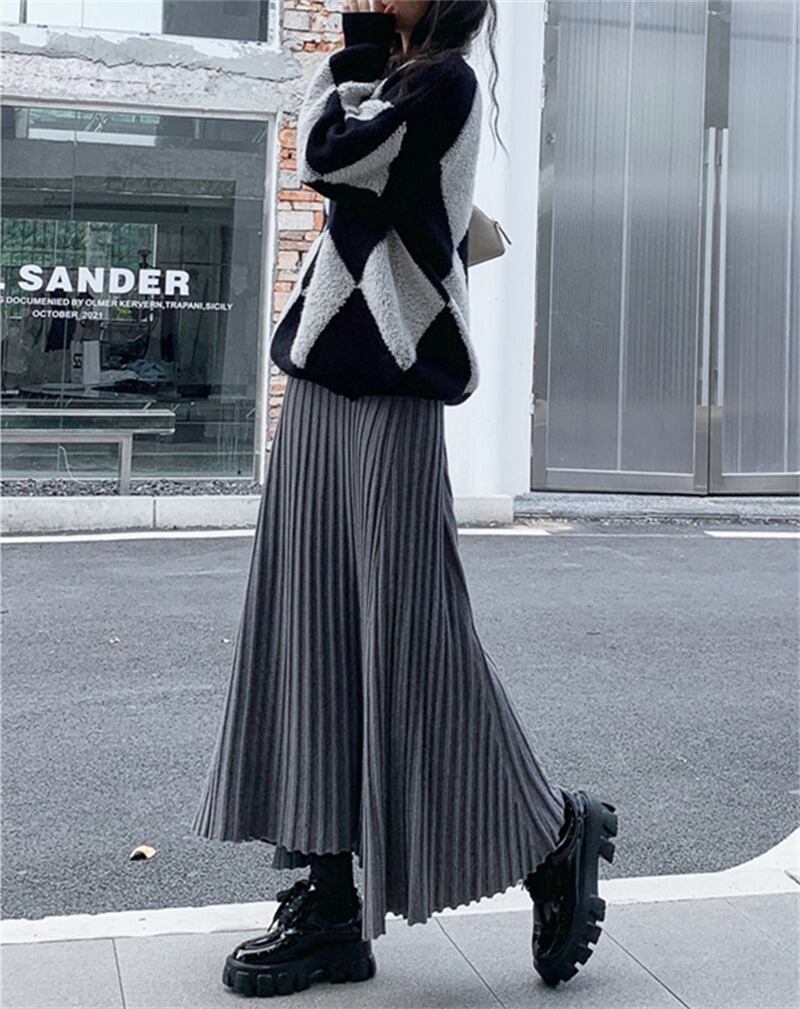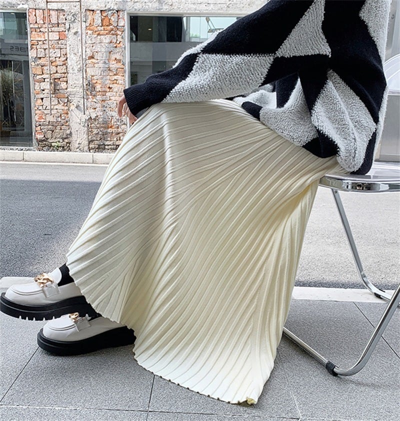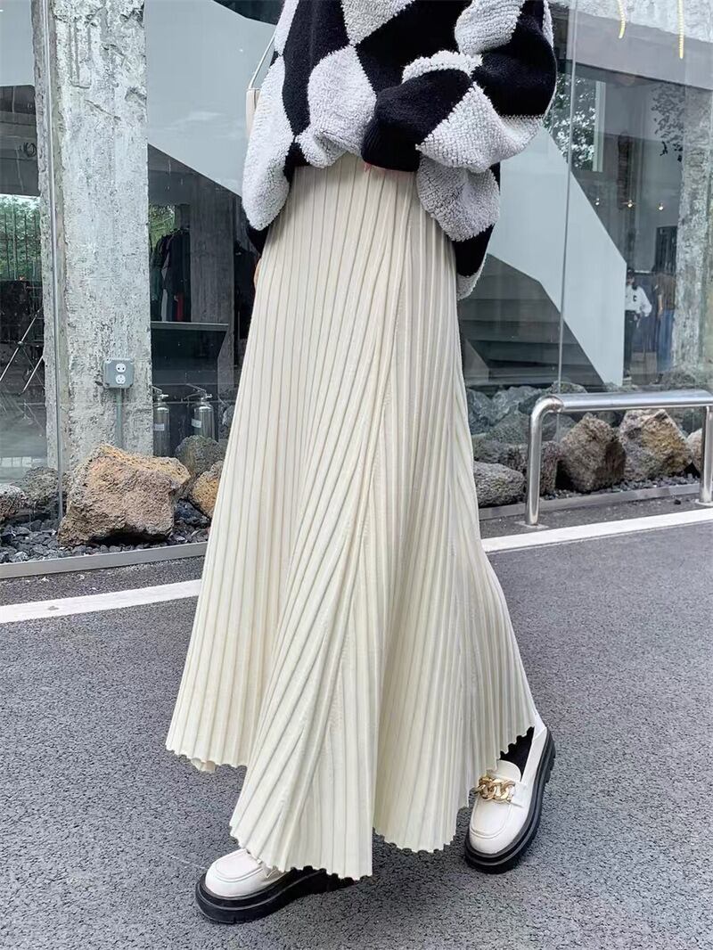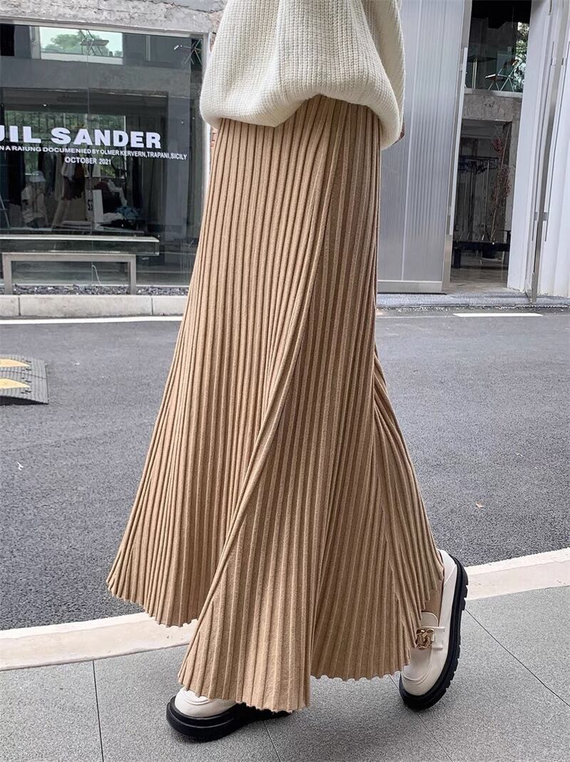 軽やかな揺れ感が魅力のプリーツロングスカートは、春秋の装いにぴったり。