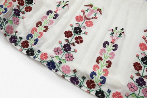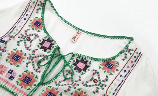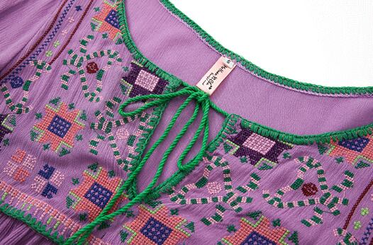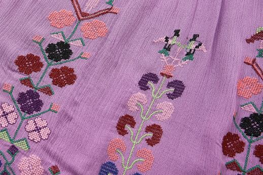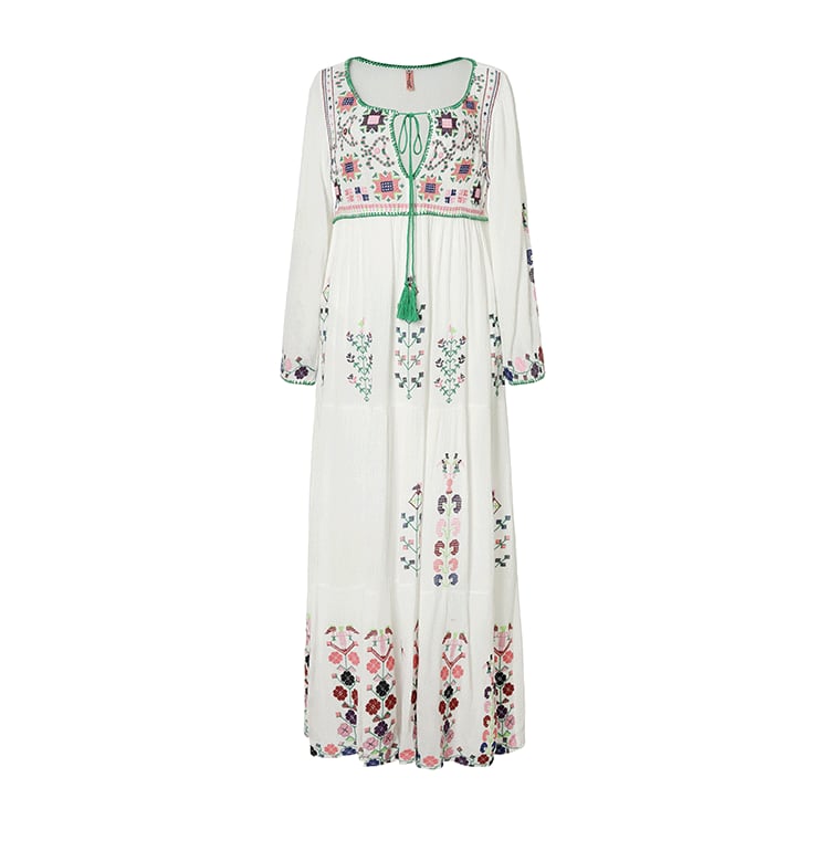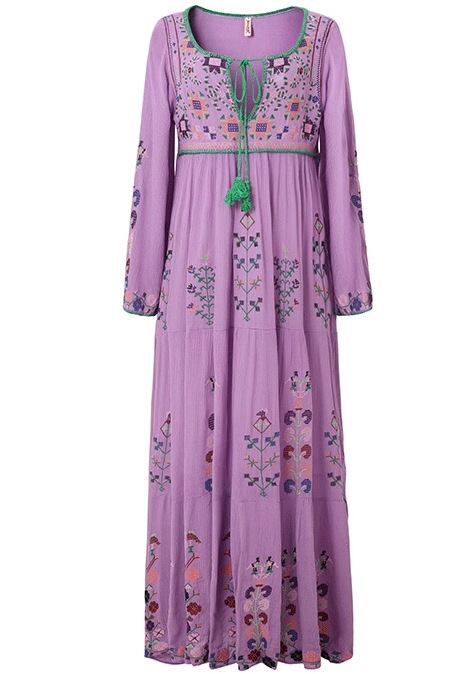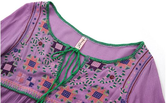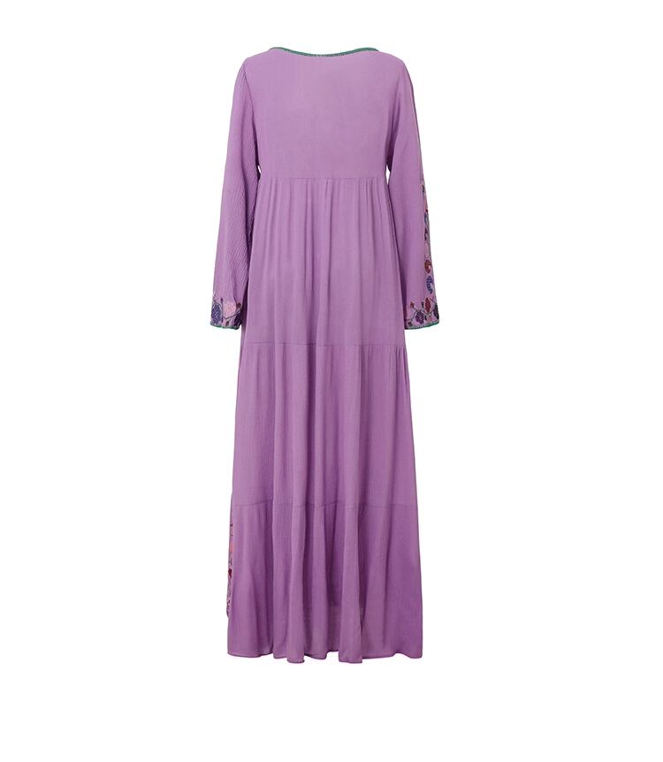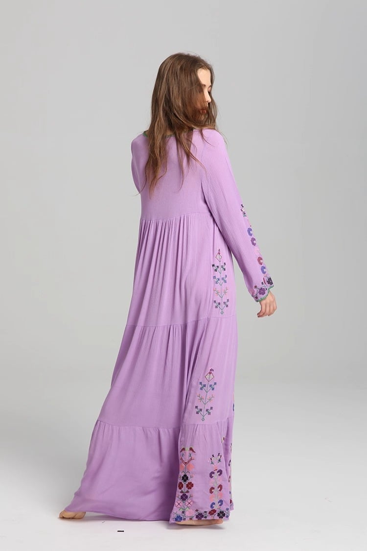 フレアシルエットと、胸元のキーネックが程よい抜け感を演出するロングワンピース。繊細な刺繍と紐飾りが、大人可愛い雰囲気を引き立てます。ゆったりオーバーサイズで体型をさりげなくカバーしつつ、着心地も抜群。