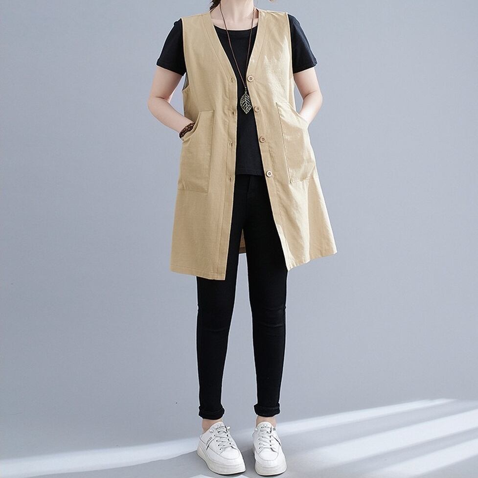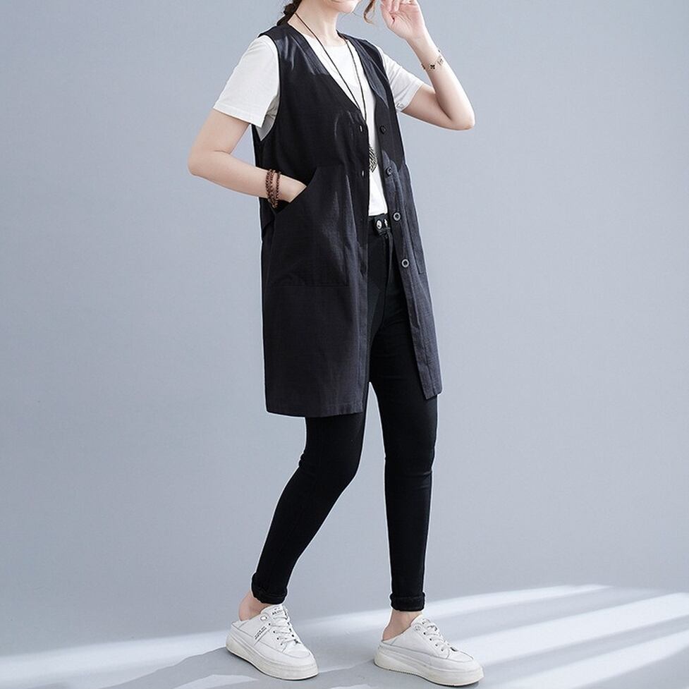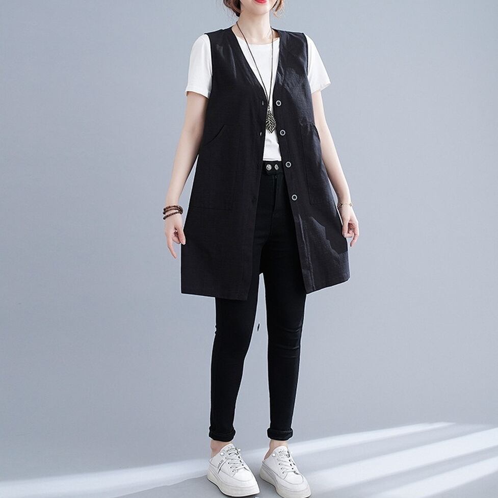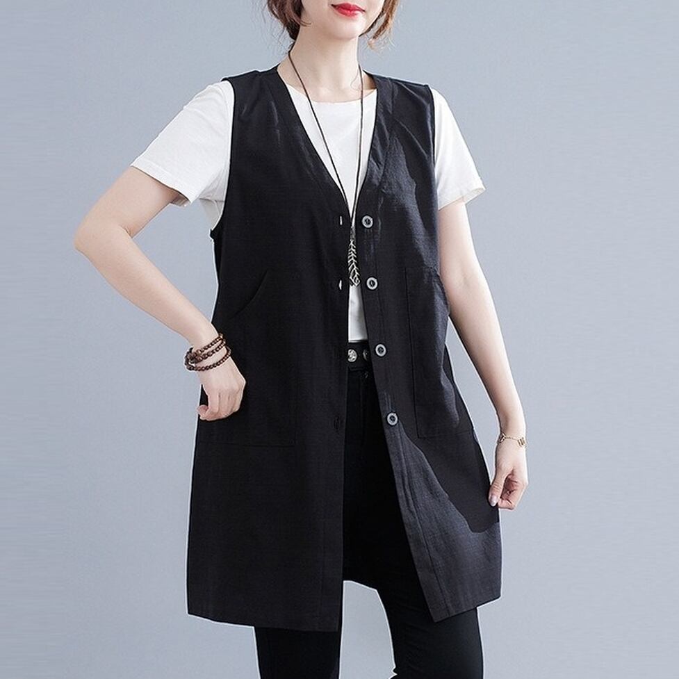 ジャケットのように装えてより涼しく過ごせる上品なジレ。気楽さ重視のアイテム選びでもきちんと引き締まった見た目は保ちたい。ノーカラーデザインはきりっと引き締まるシャープなネックラインを形成
