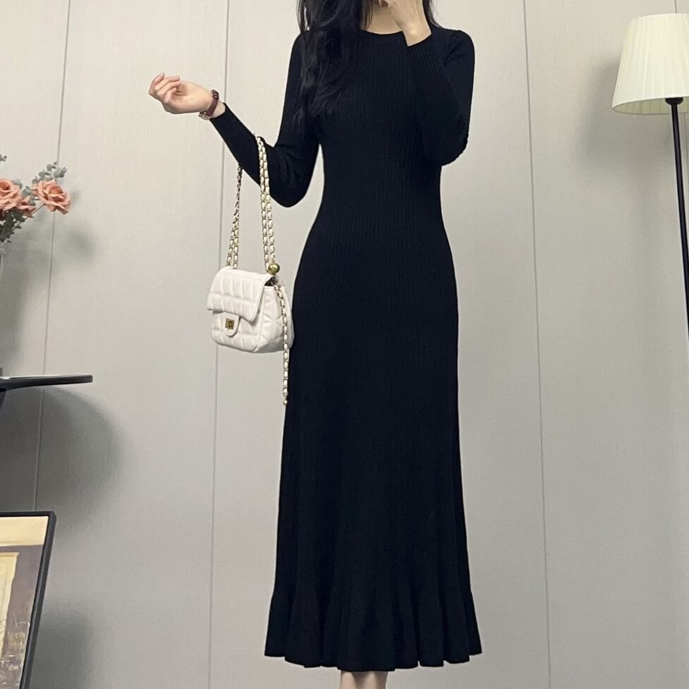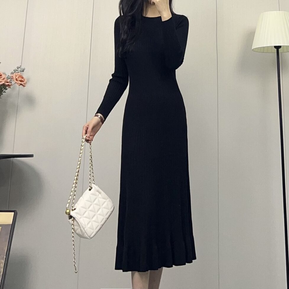 やわらかさや親しみやすさをもたらす特有の素材感で美しいラインを実現するニットワンピース。体に自然と沿うようなリブに加えてきゃしゃ見えを可能に。裾はややフレアな形でレディな雰囲気を調整
