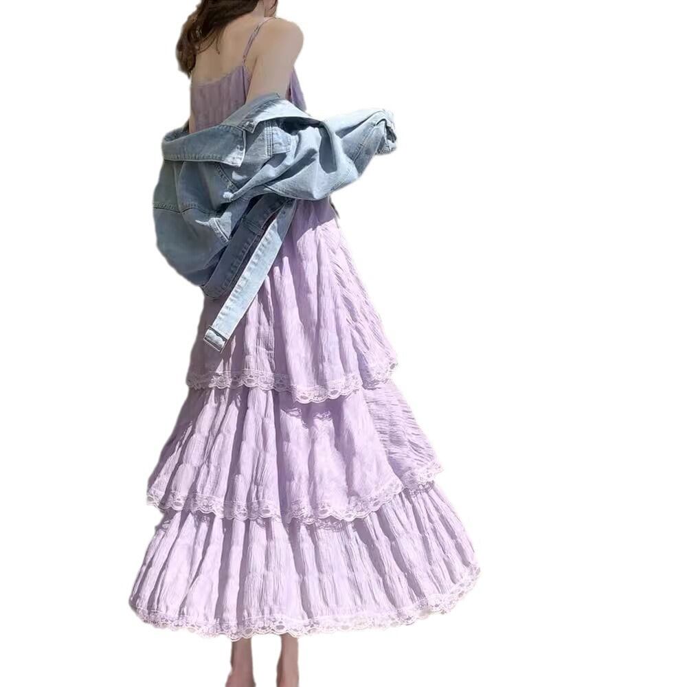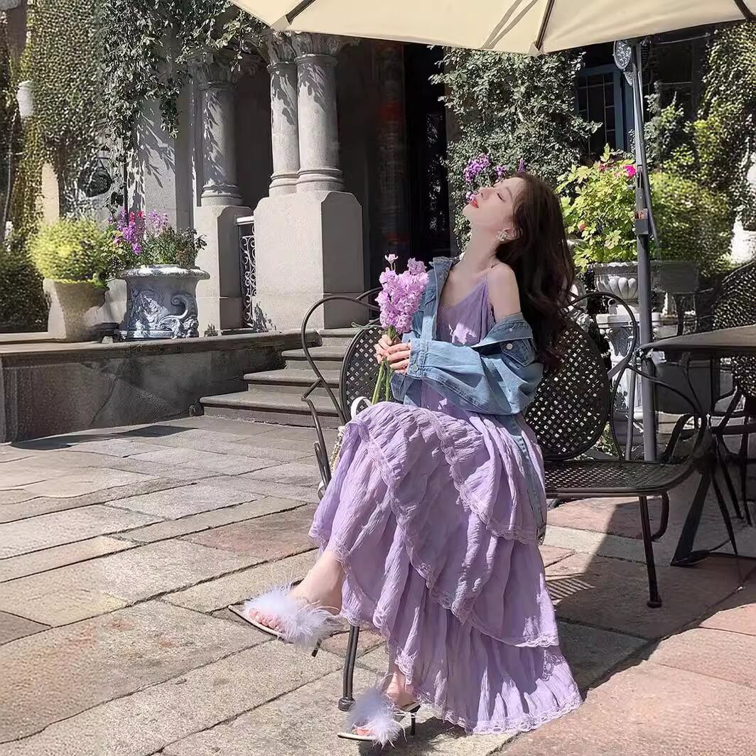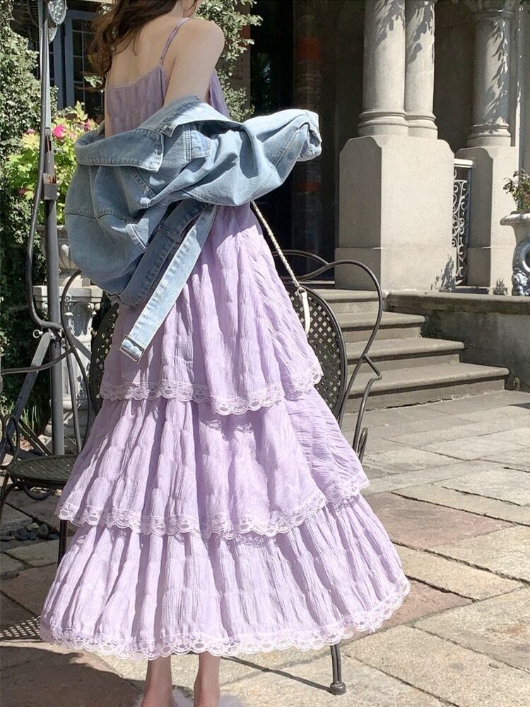 白と紫の大人カラーが揃い、春夏のデートや女子会、リゾートコーデにもぴったり。シンプルな無地デザインだから、アクセや羽織り次第でガーリーにも大人可愛い雰囲気にも着回し可能です。