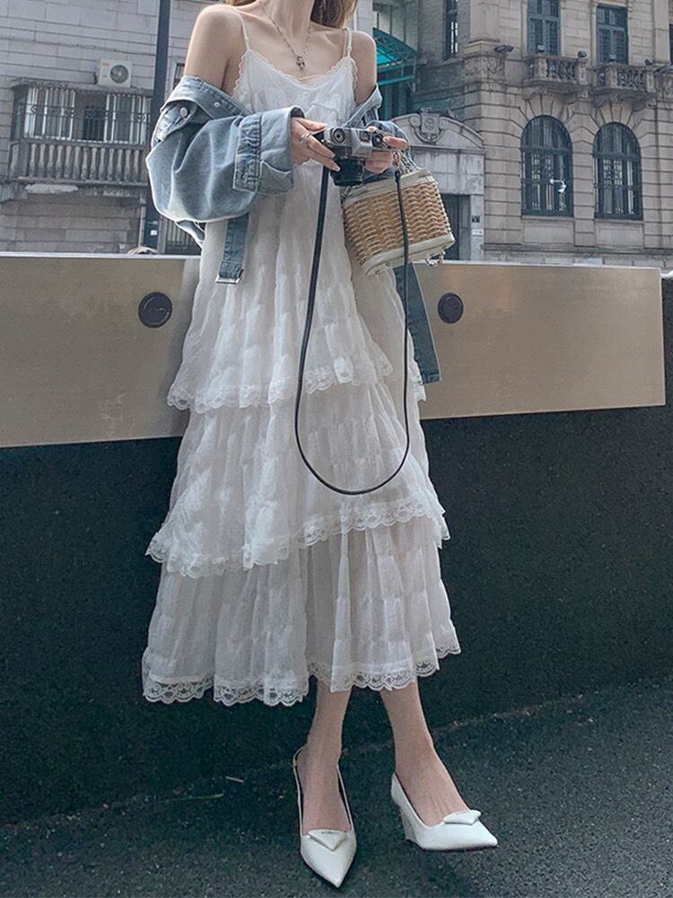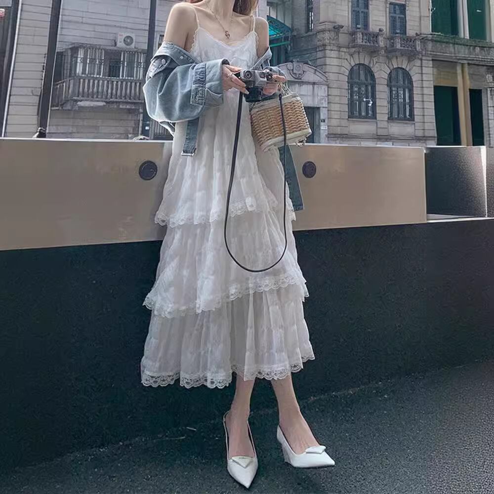 軽やかな生地と上品なレースが女性らしさを引き立てるキャミワンピース。Vネック×Aラインの美シルエットで、体型をさりげなくカバーしつつスタイルアップを叶えます。