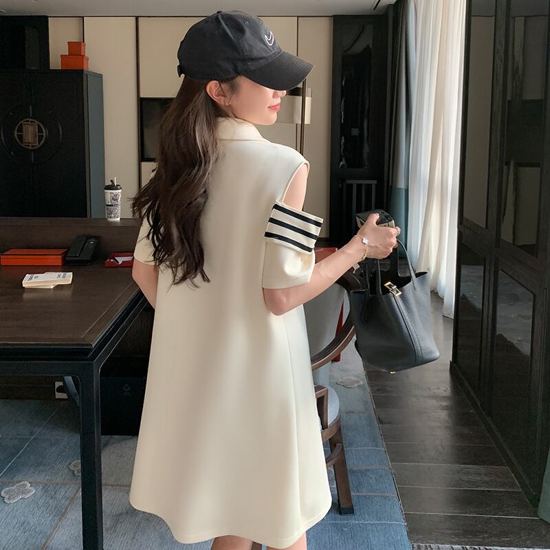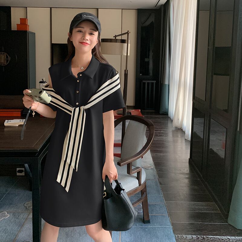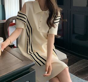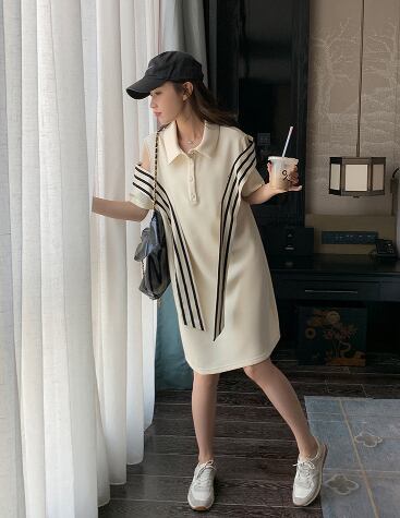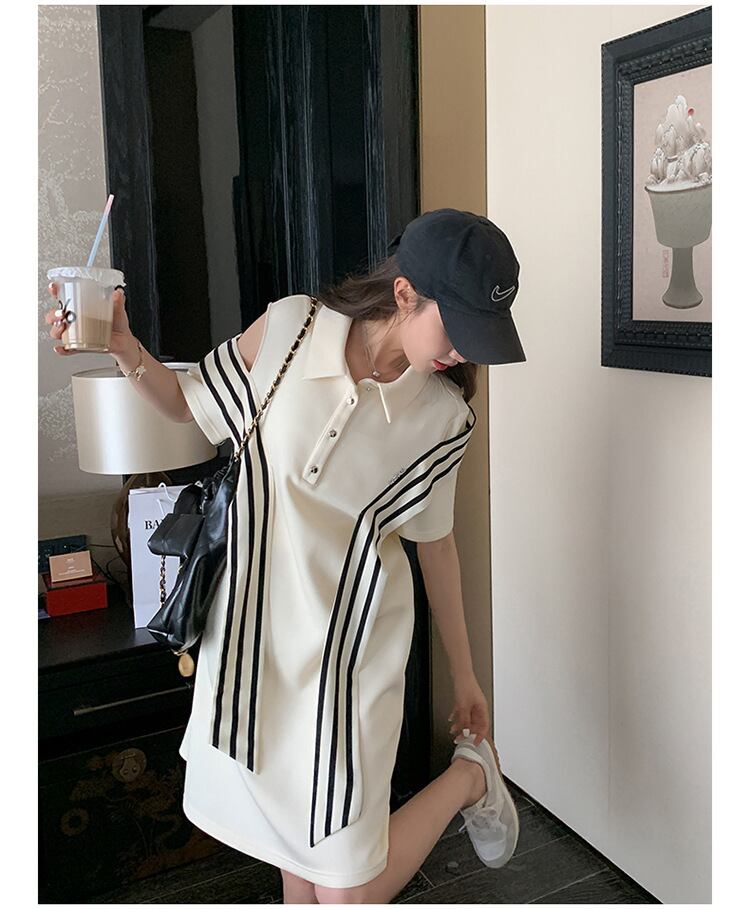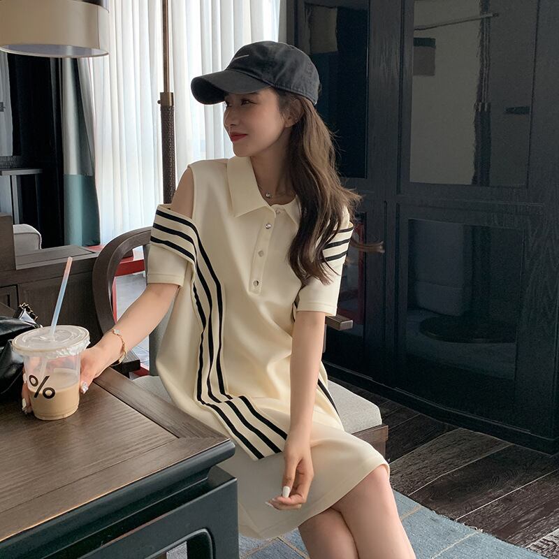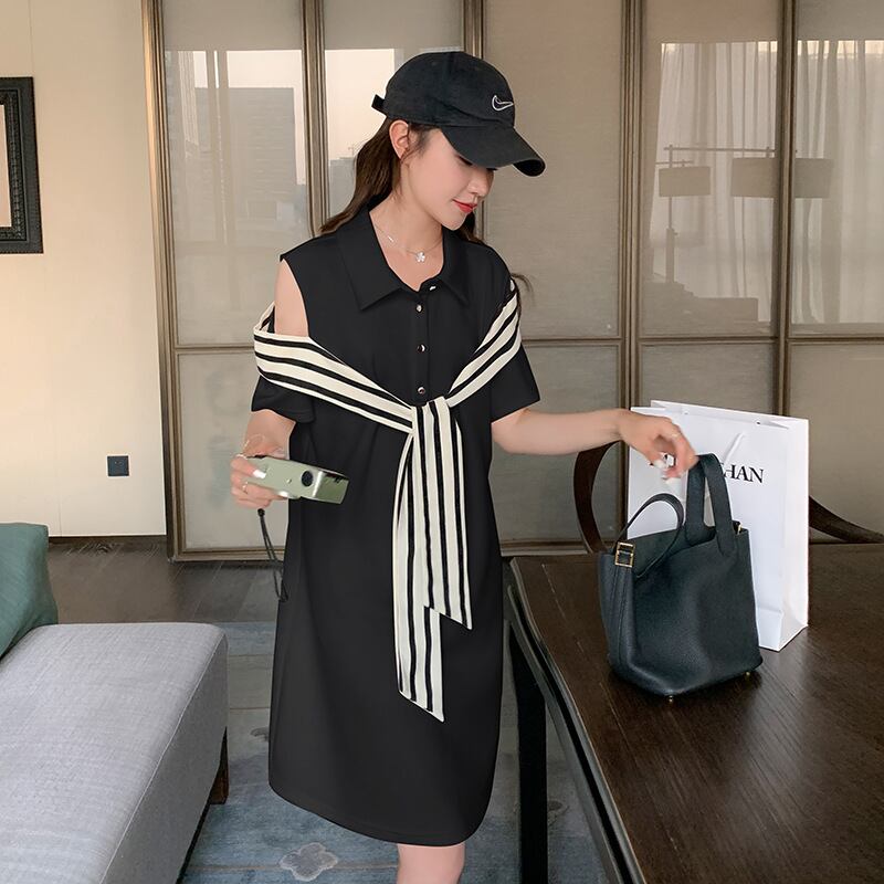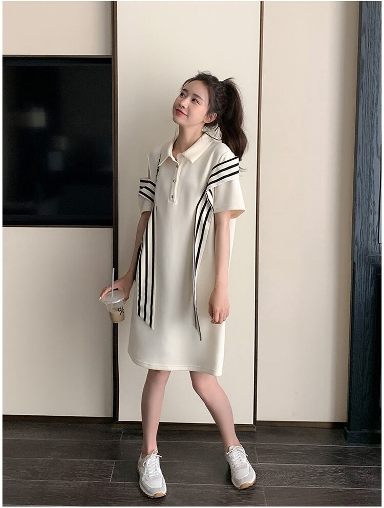 ゆったりとしたオーバーサイズシルエットが、こなれ感と抜け感を演出する襟付きワンピース。右と左で異なる袖デザイン、ストライプ柄のショールを羽織っているようなドッキングデザインがアクセントでシンプルながらも印象的な一枚です。
