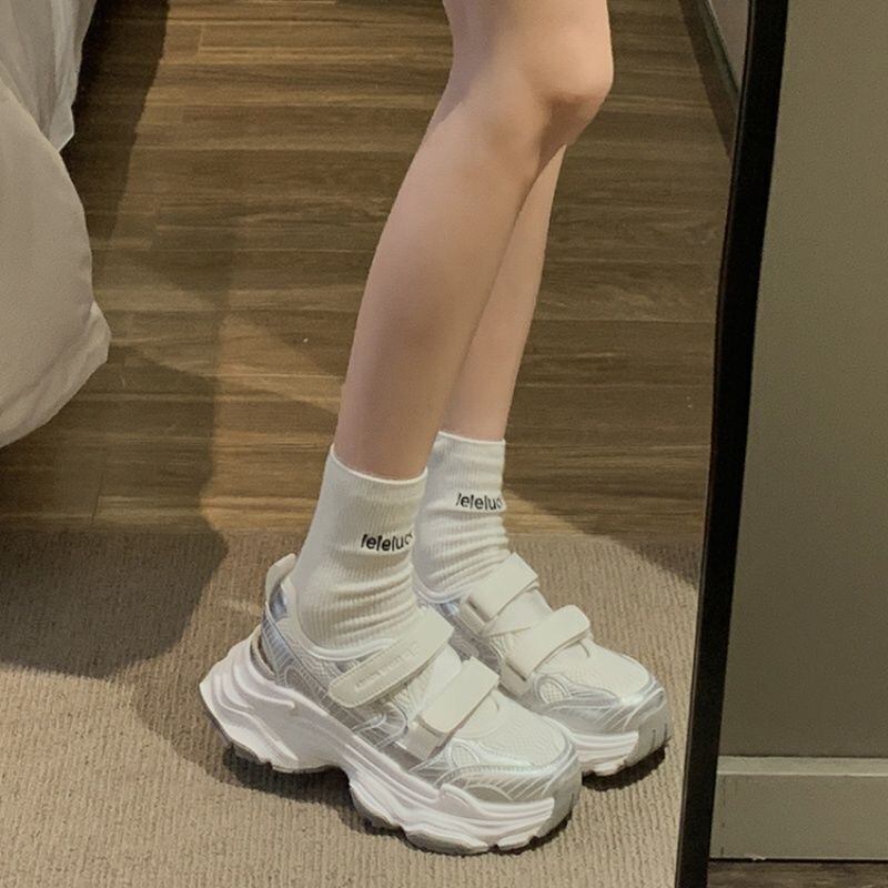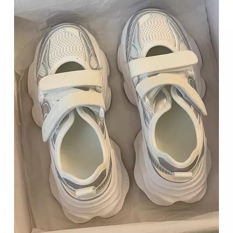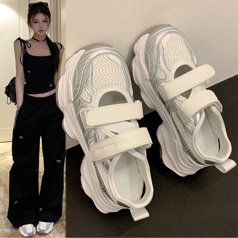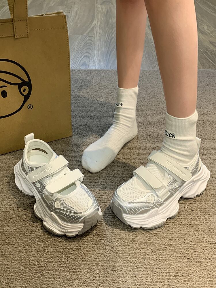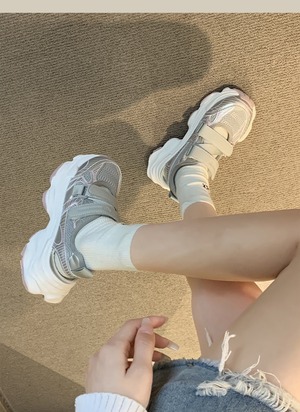 通気性の良いメッシュ素材が春夏の足元を爽やかに演出。厚底効果で脚長&美脚見えしつつ、スポーティーかつクールな印象を与えます。