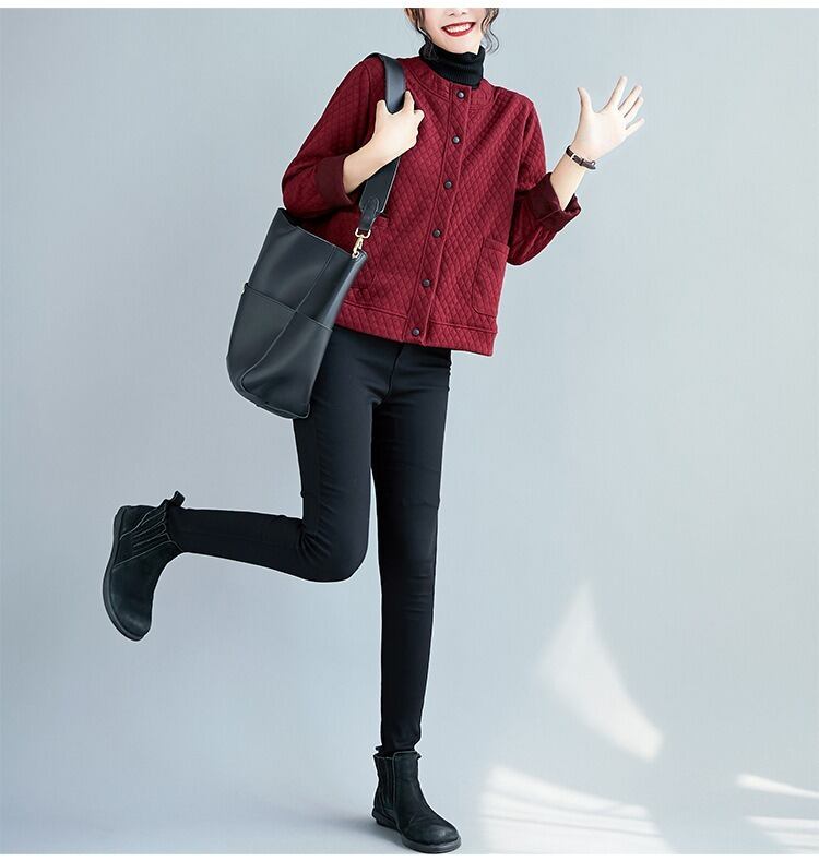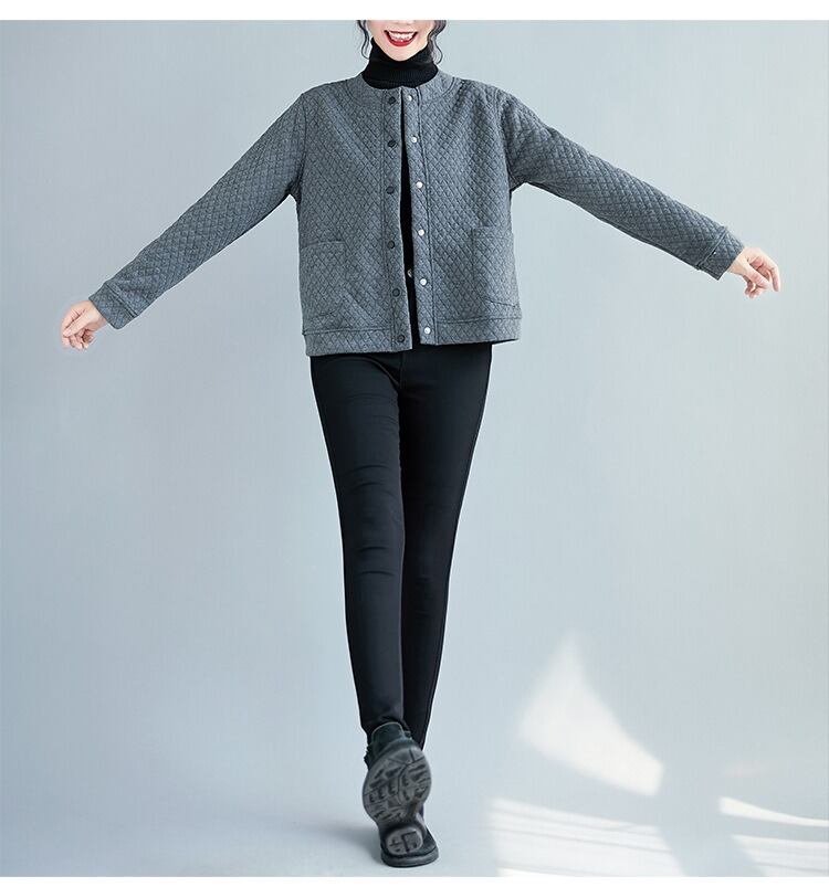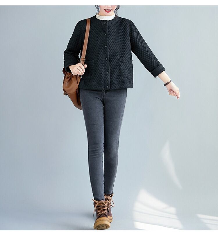 無地でシンプルながらも、ポケットやボタンが程よいアクセントになり、秋冬の防寒&おしゃれを両立します。