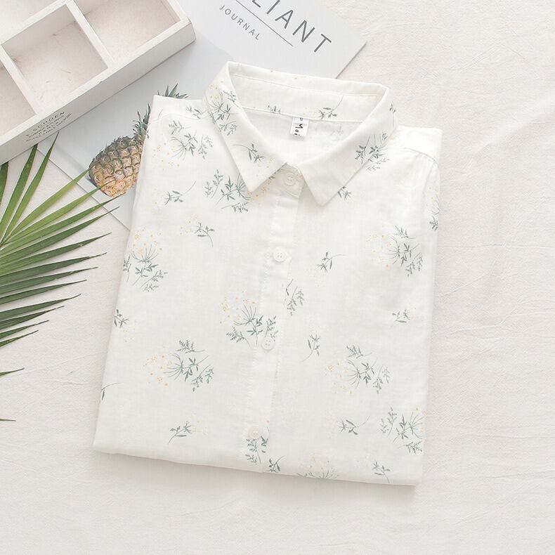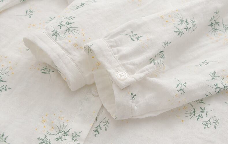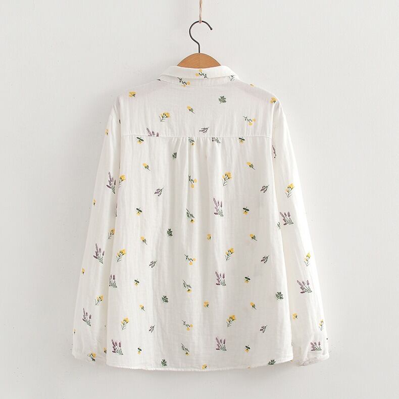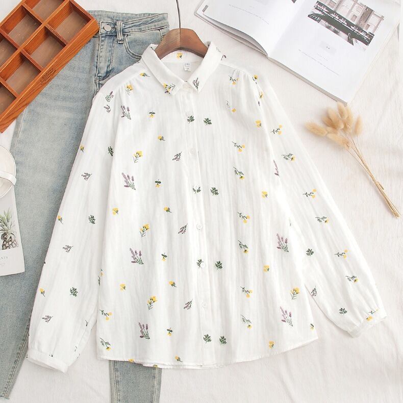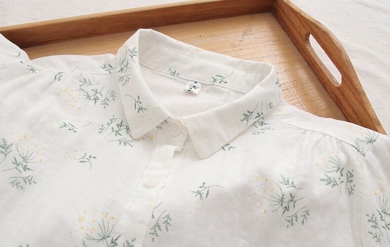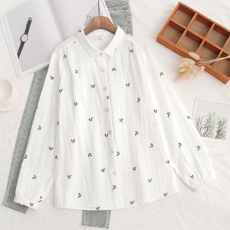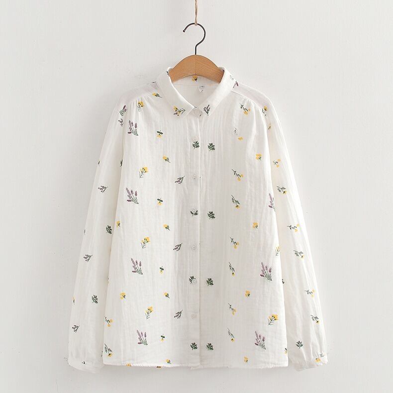 可憐な花柄と上品なドット柄が選べる、前開きタイプの襟付き長袖シャツブラウスです。