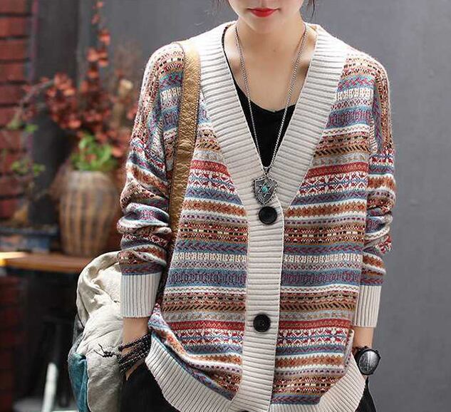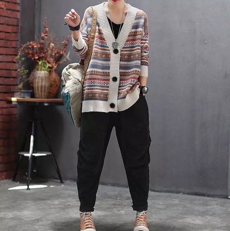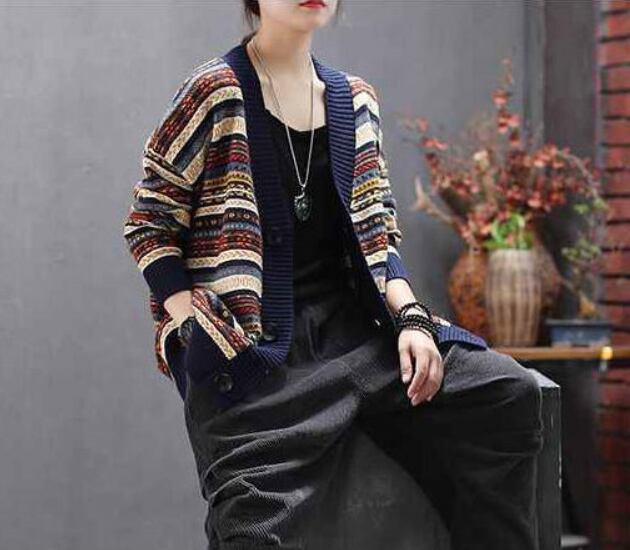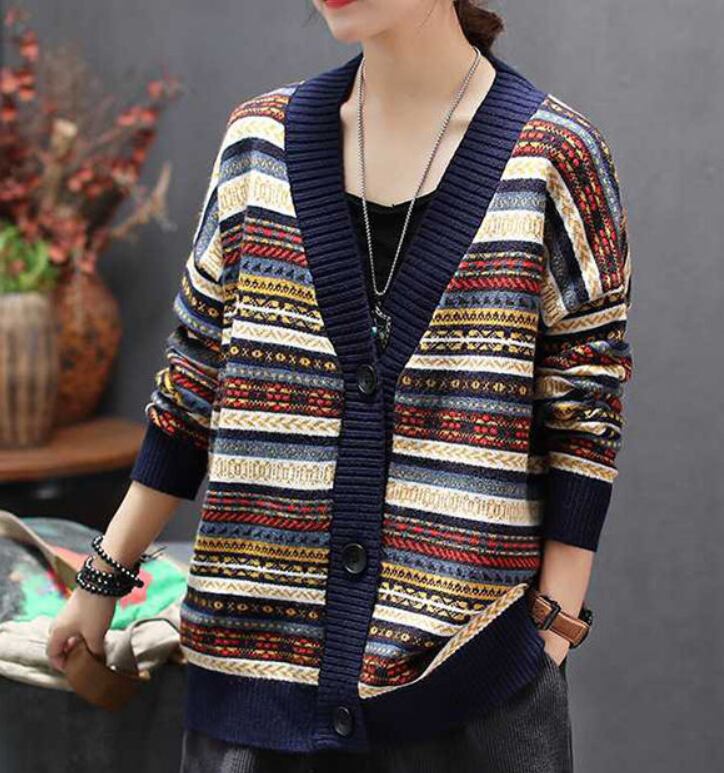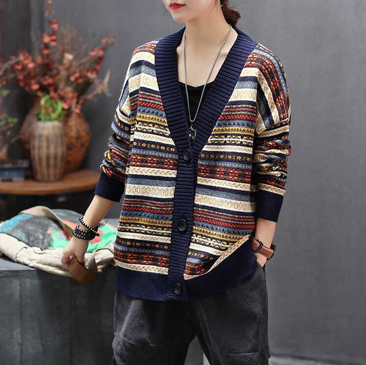 レトロな柄のニットカーディガン
