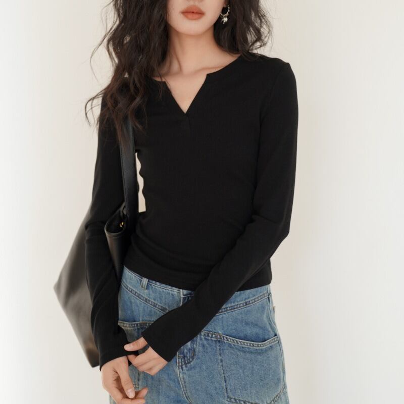シンプルでありながら、さりげない上品さを演出する無地のレディース長袖シャツです。Vネックデザインが洗練された大人の女性の印象を与えます。タイトなシルエットは、スタイルを美しく引き立て、伸縮性のあるストレッチ素材が快適な着心地を実現!カジュアルにもきれいめにもコーディネートできる万能アイテムです。