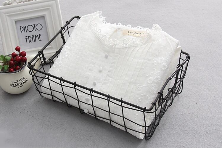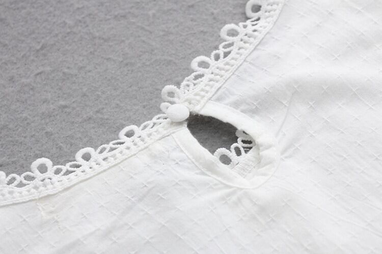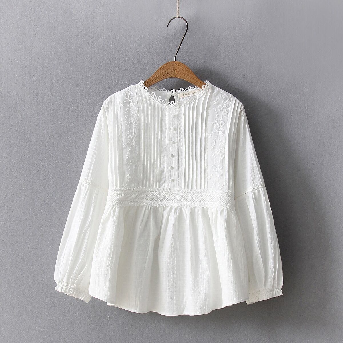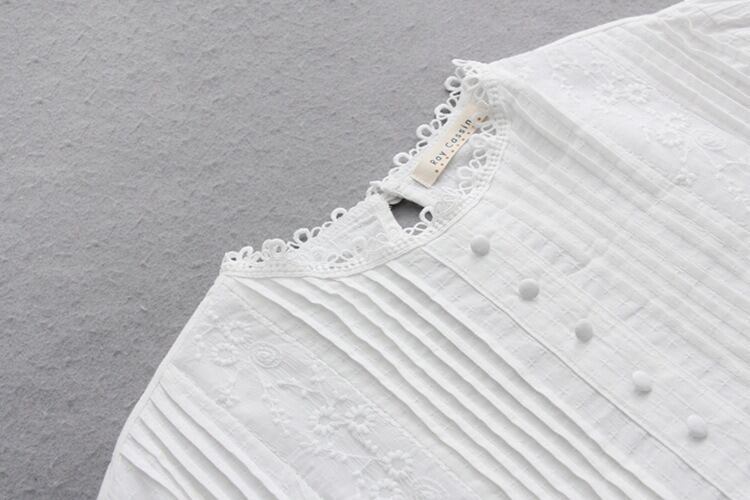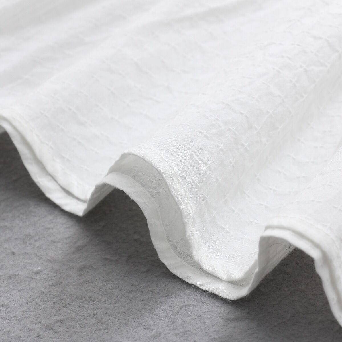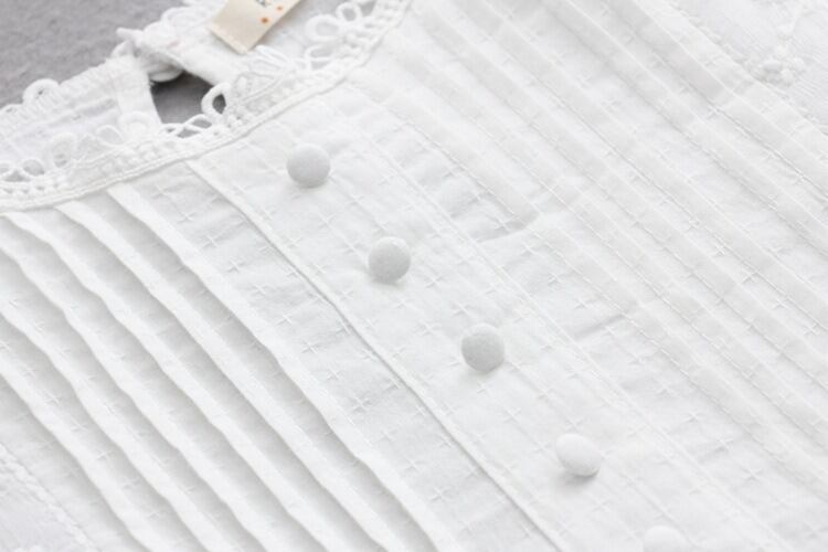 柔らかなホワイトカラーが映える、ノーカラーの長袖ブラウスです。