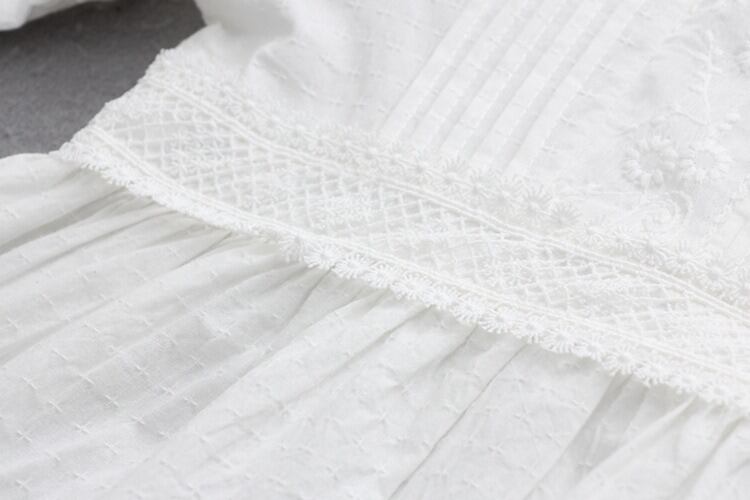 フレアシルエットとペプラム切り替えが女性らしいラインを演出し、プリーツやレース、刺繍などのディテールが上品さをプラスします。