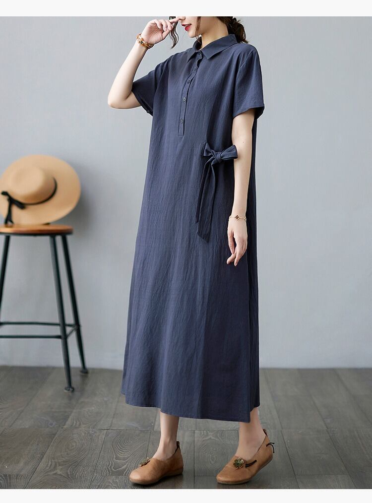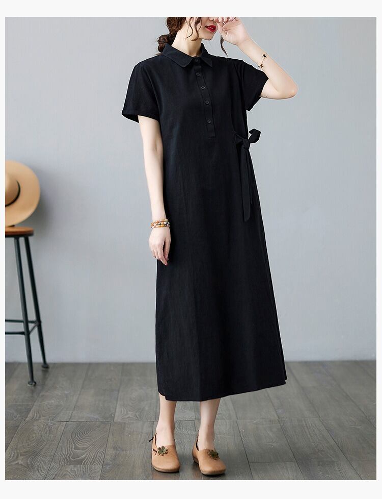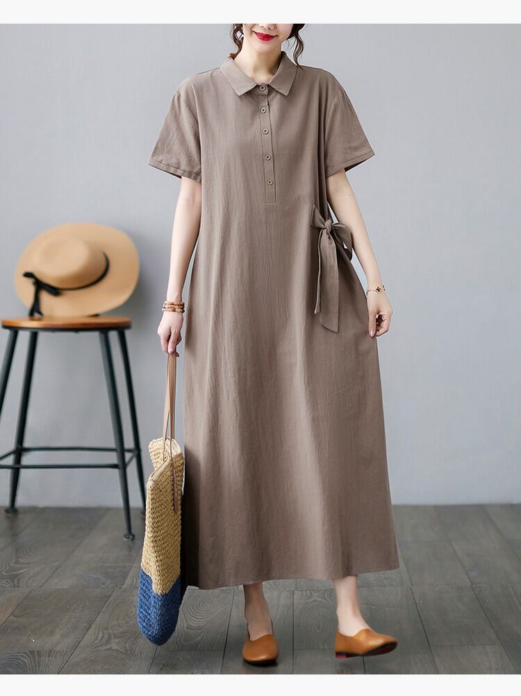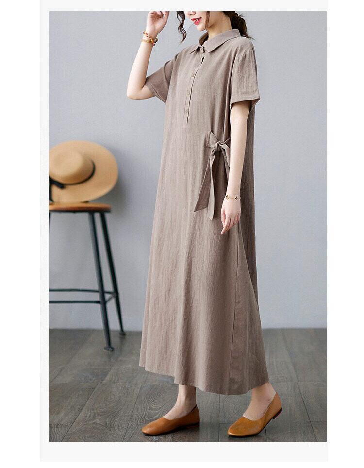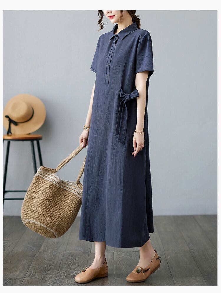 ゆったりとしたAラインシルエットが魅力のミモレ丈シャツワンピースです。