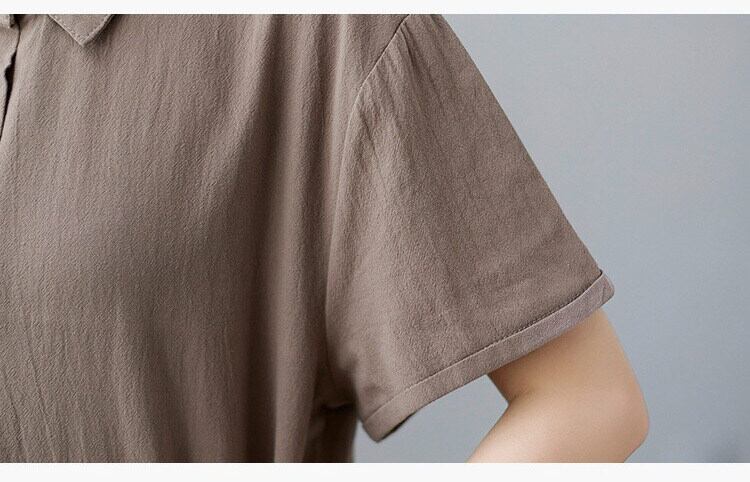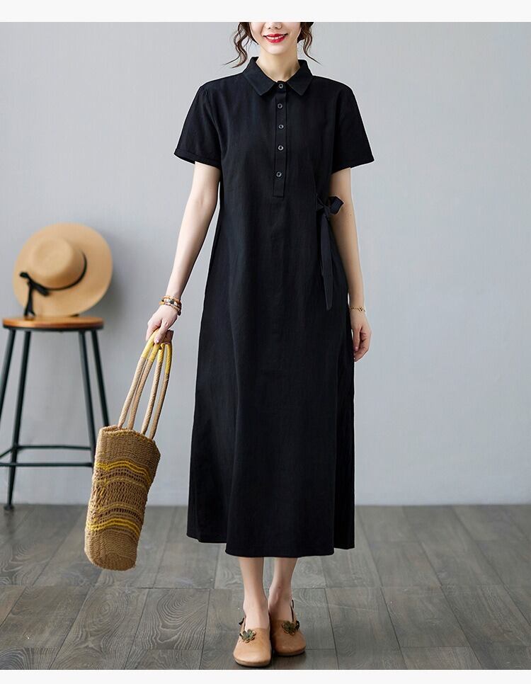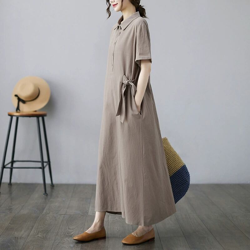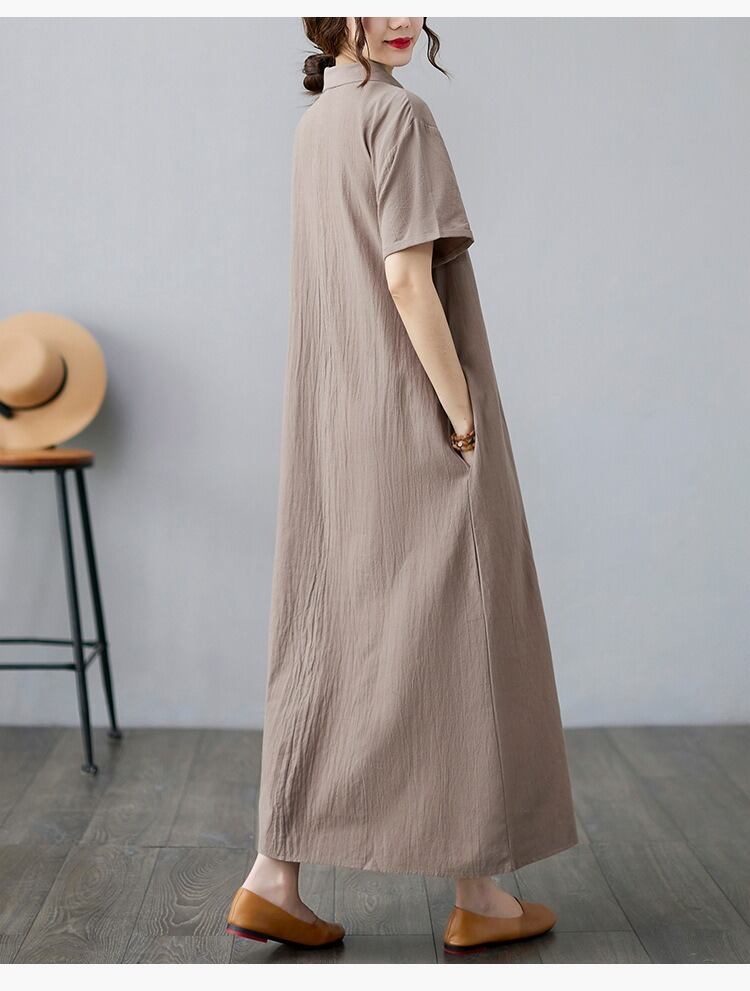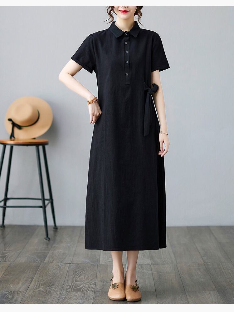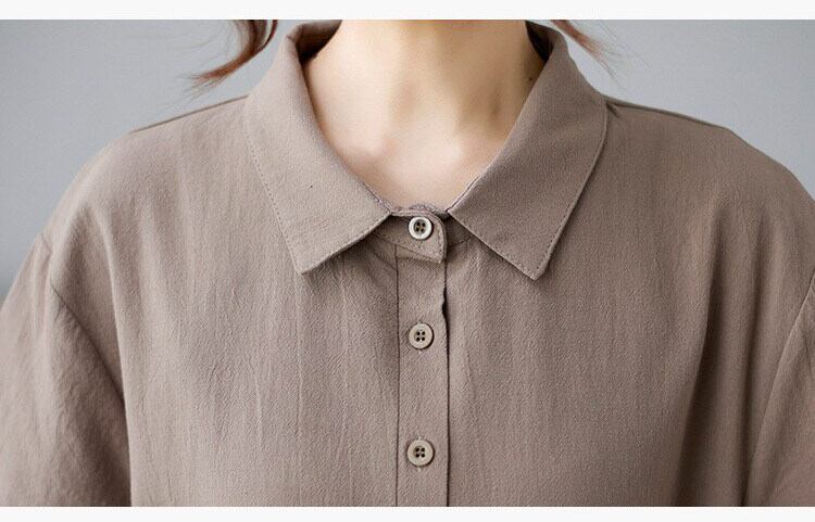 ゆったりとしたAラインシルエットが魅力のミモレ丈シャツワンピースです。